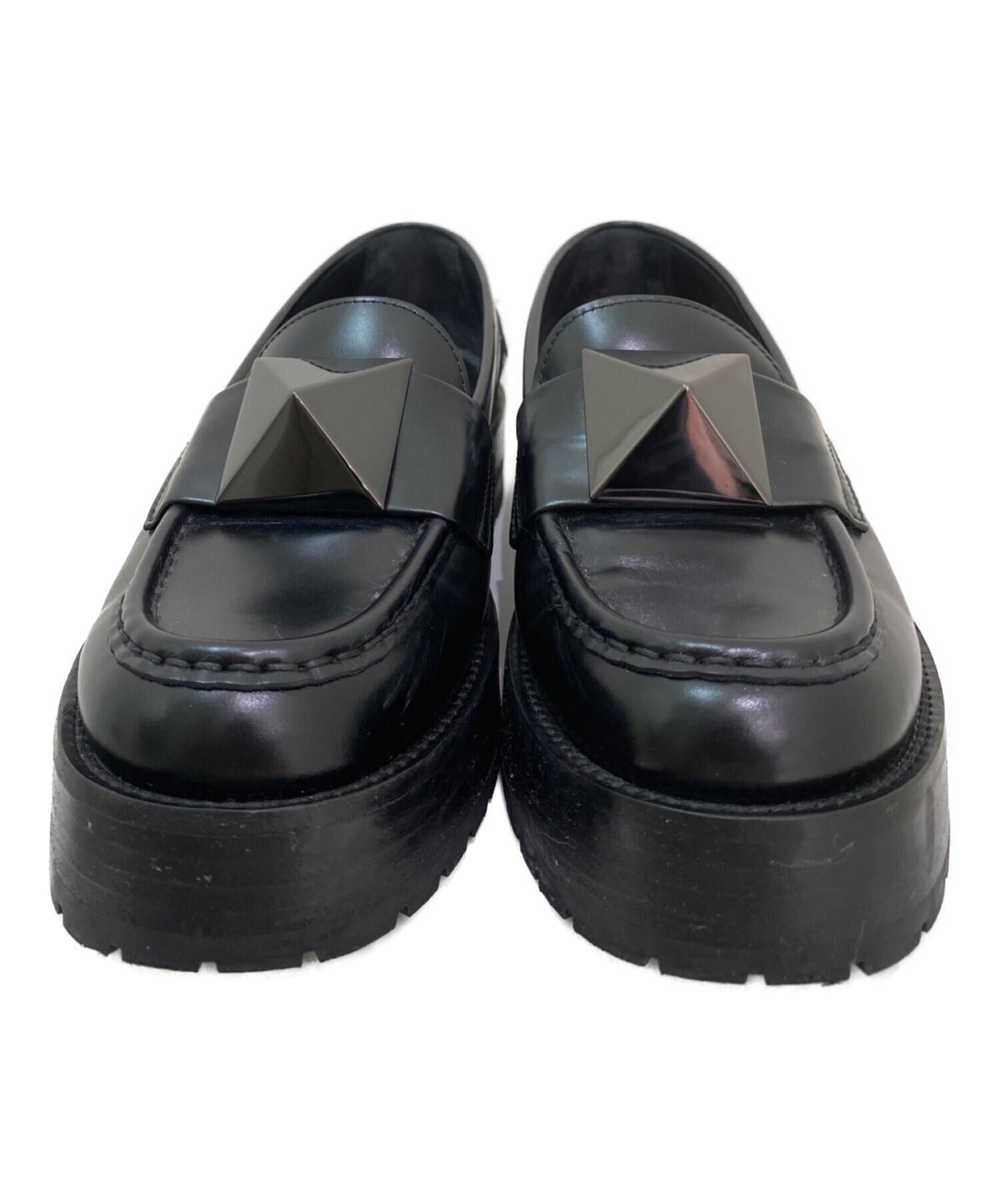 • VALENTINO(ヴァレンティノ)VALENTINO (ヴァレンティノ) ワンスタッズローファー ブラック サイズ:36の古着・服飾アイテム ソールに擦れ有