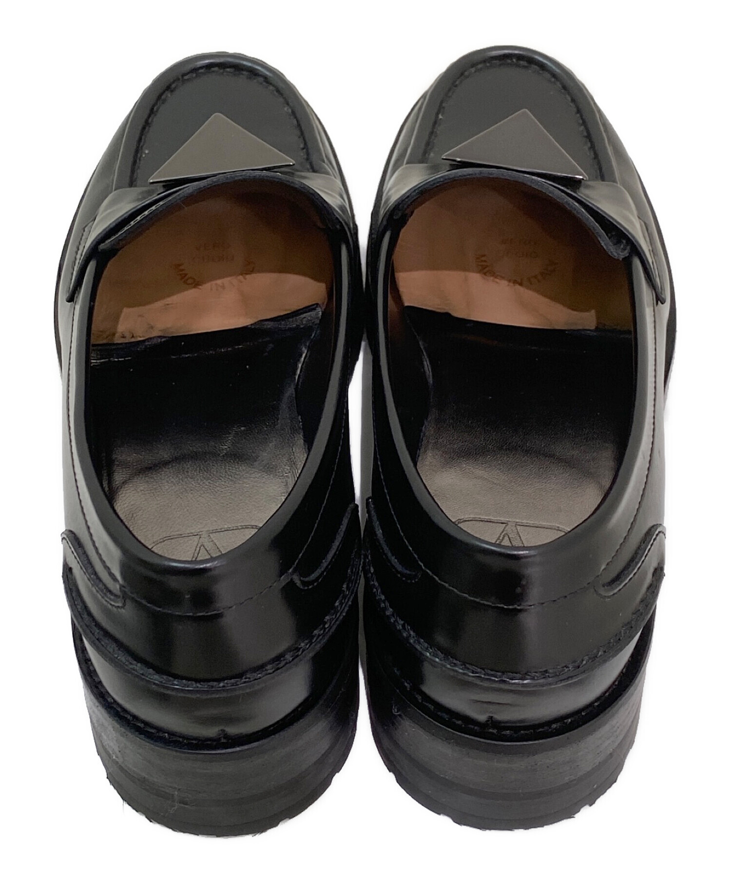 • VALENTINO(ヴァレンティノ)VALENTINO (ヴァレンティノ) ワンスタッズローファー ブラック サイズ:36の古着・服飾アイテム 内側に剥がれ・汚れ有