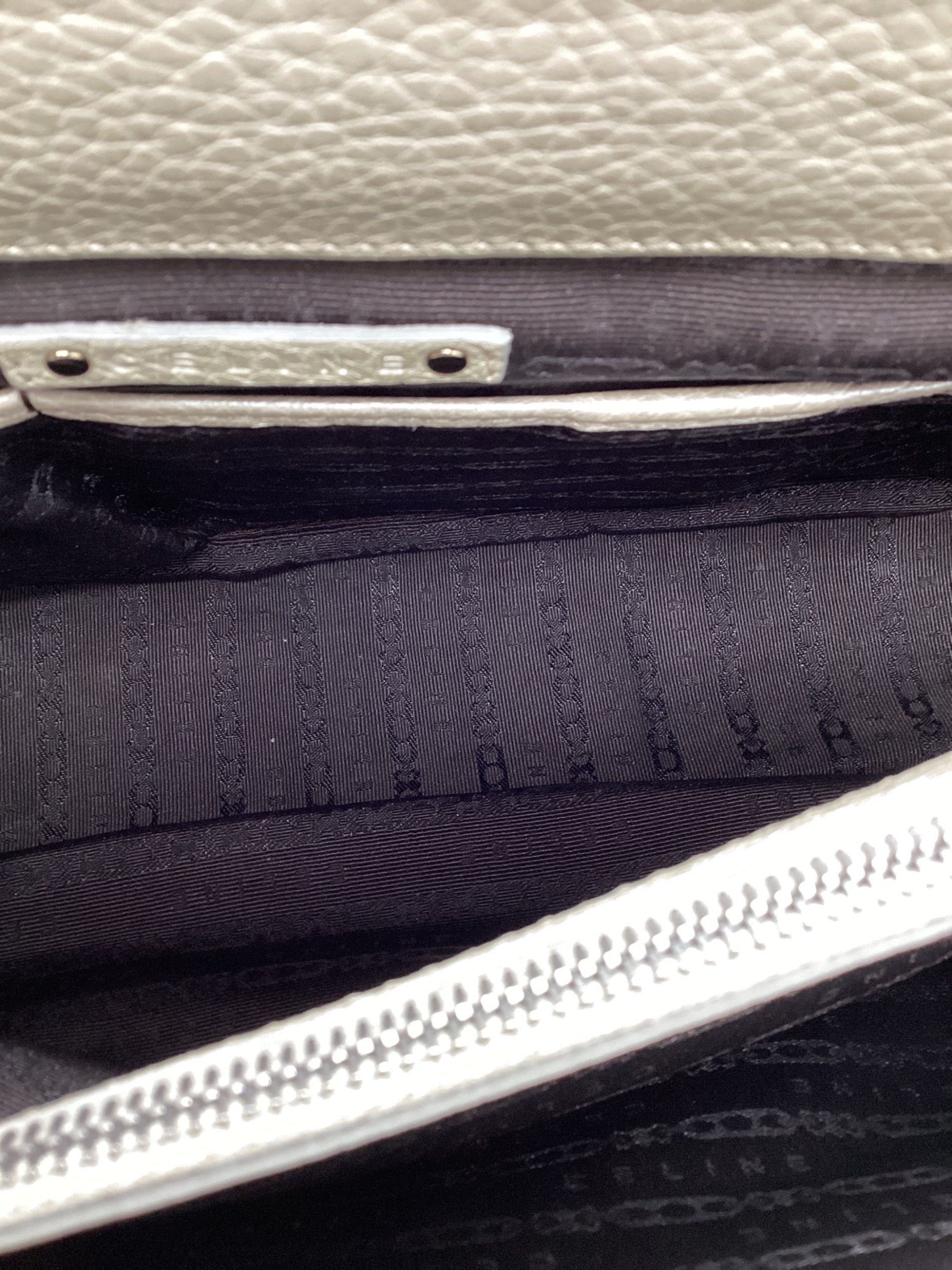 | スタッフコメント | CELINEのシンプルなカラーリングのハンドバッグです。 収納幅も広く、大き目の長財布等も軽々入ります。 |