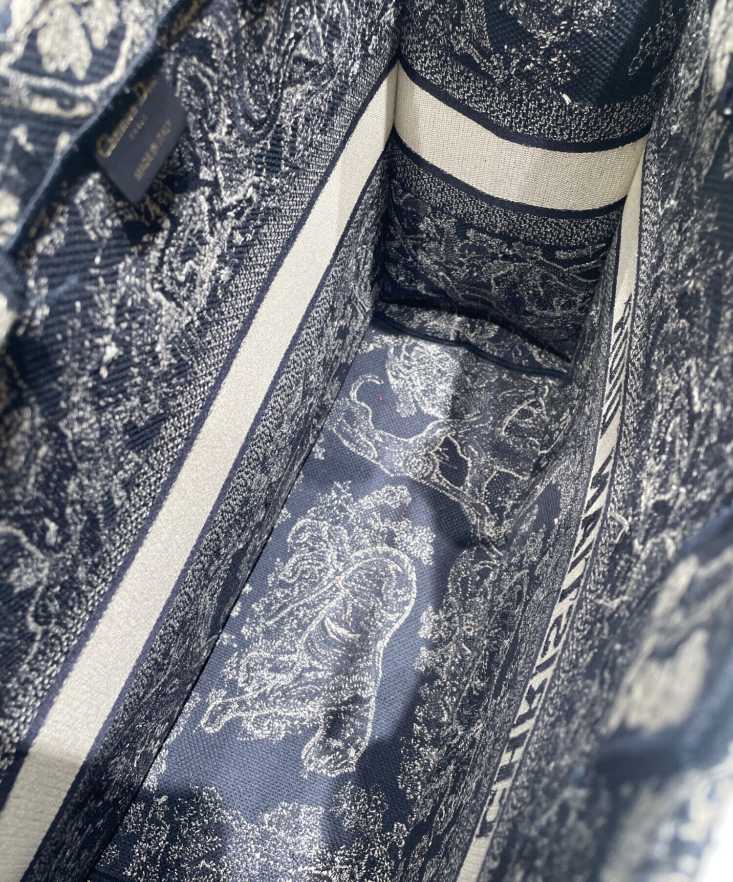 | スタッフコメント | 全面に施された動植物が印象的なDIORのブックトート ラージサイズでございます。ハンドルが大きいため、ハンドバッグやトートバッグと2WAYでお使いいただけます。また、収納スペースが豊富であるため、デイリーユースなど様々なシーンで活躍する万能アイテムです。 |