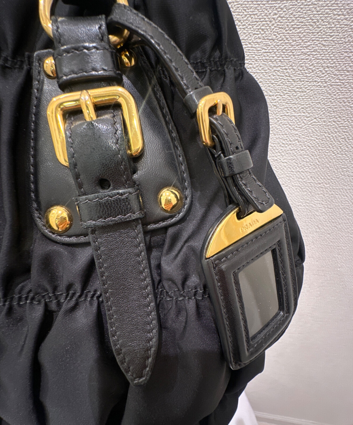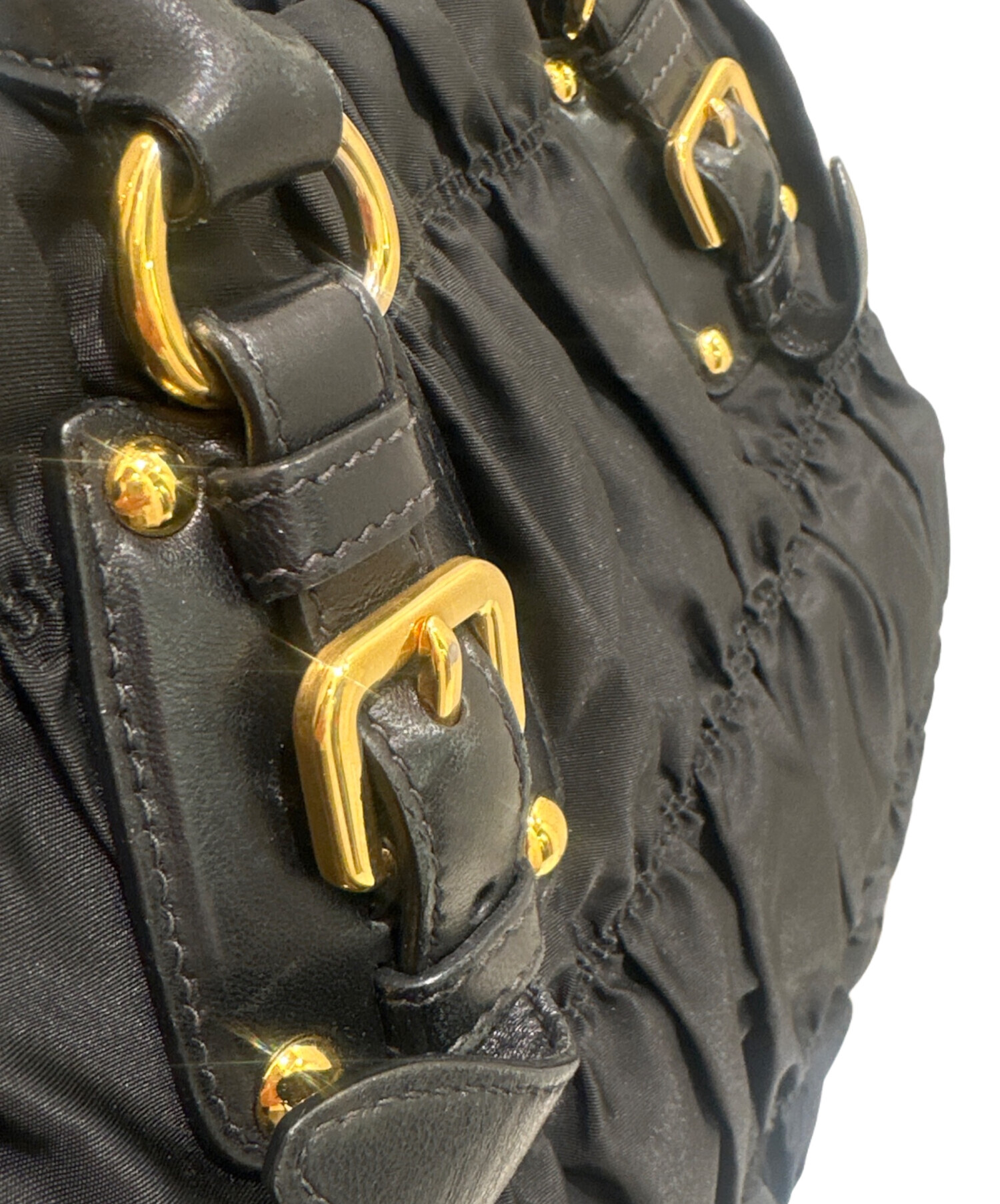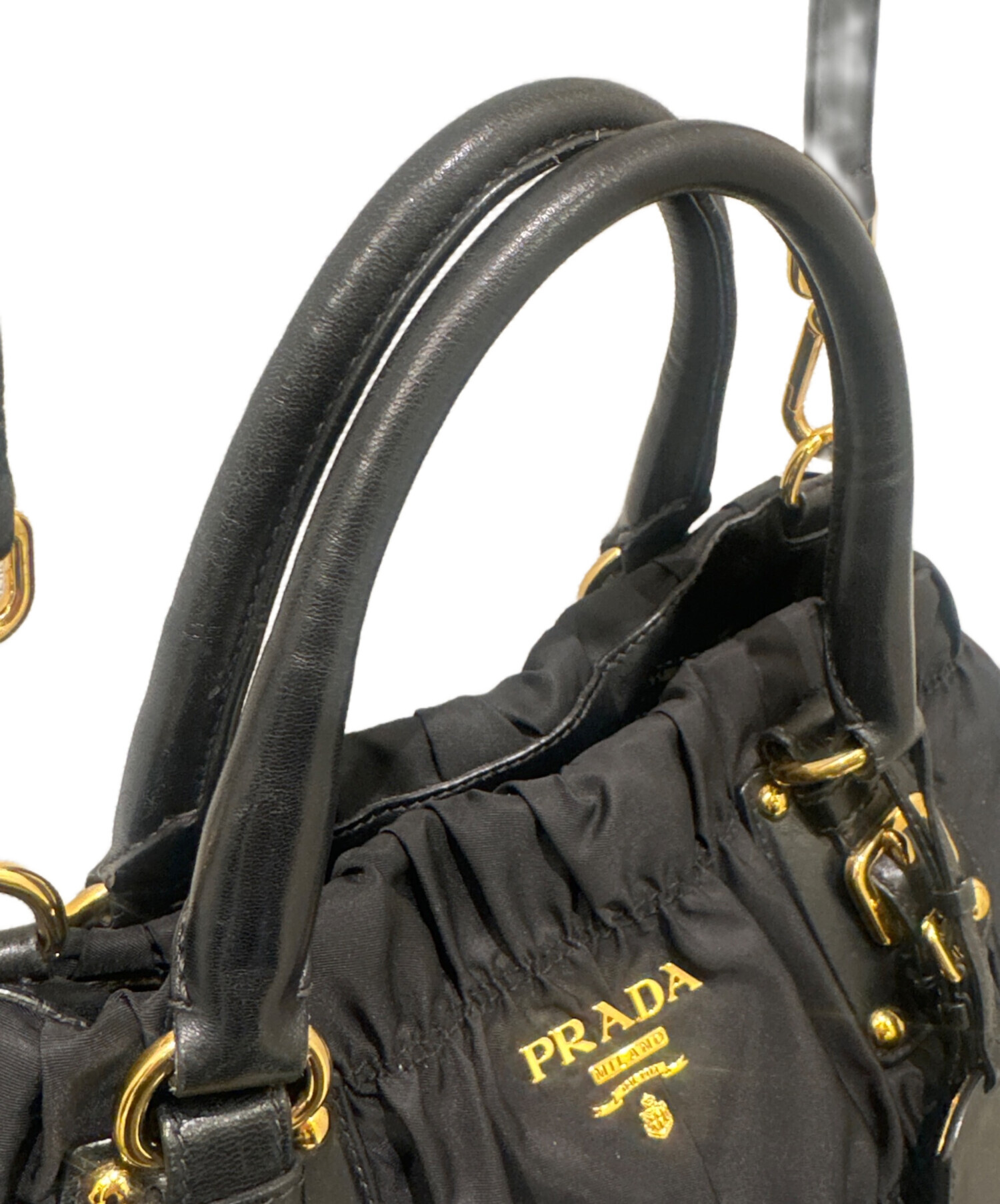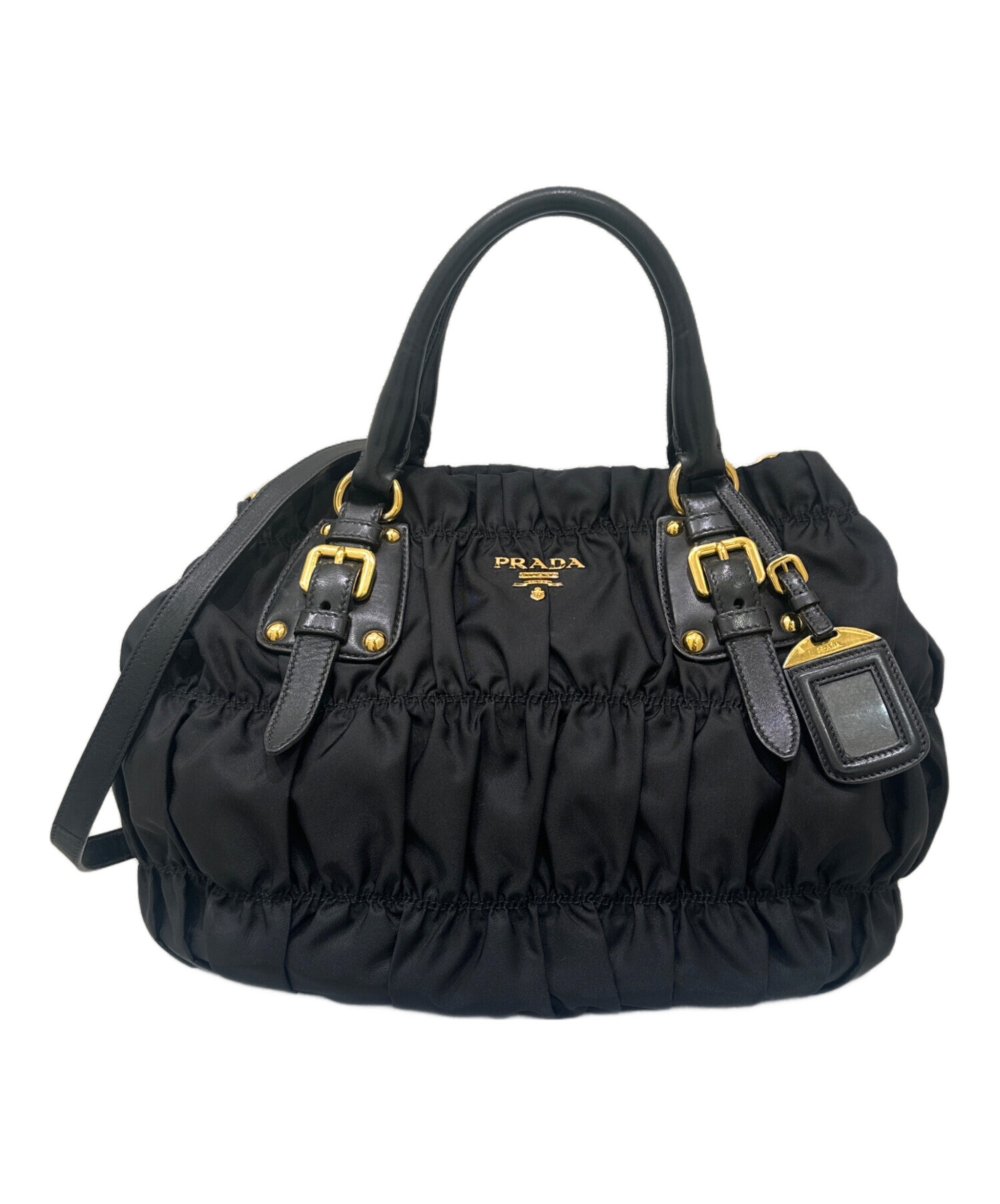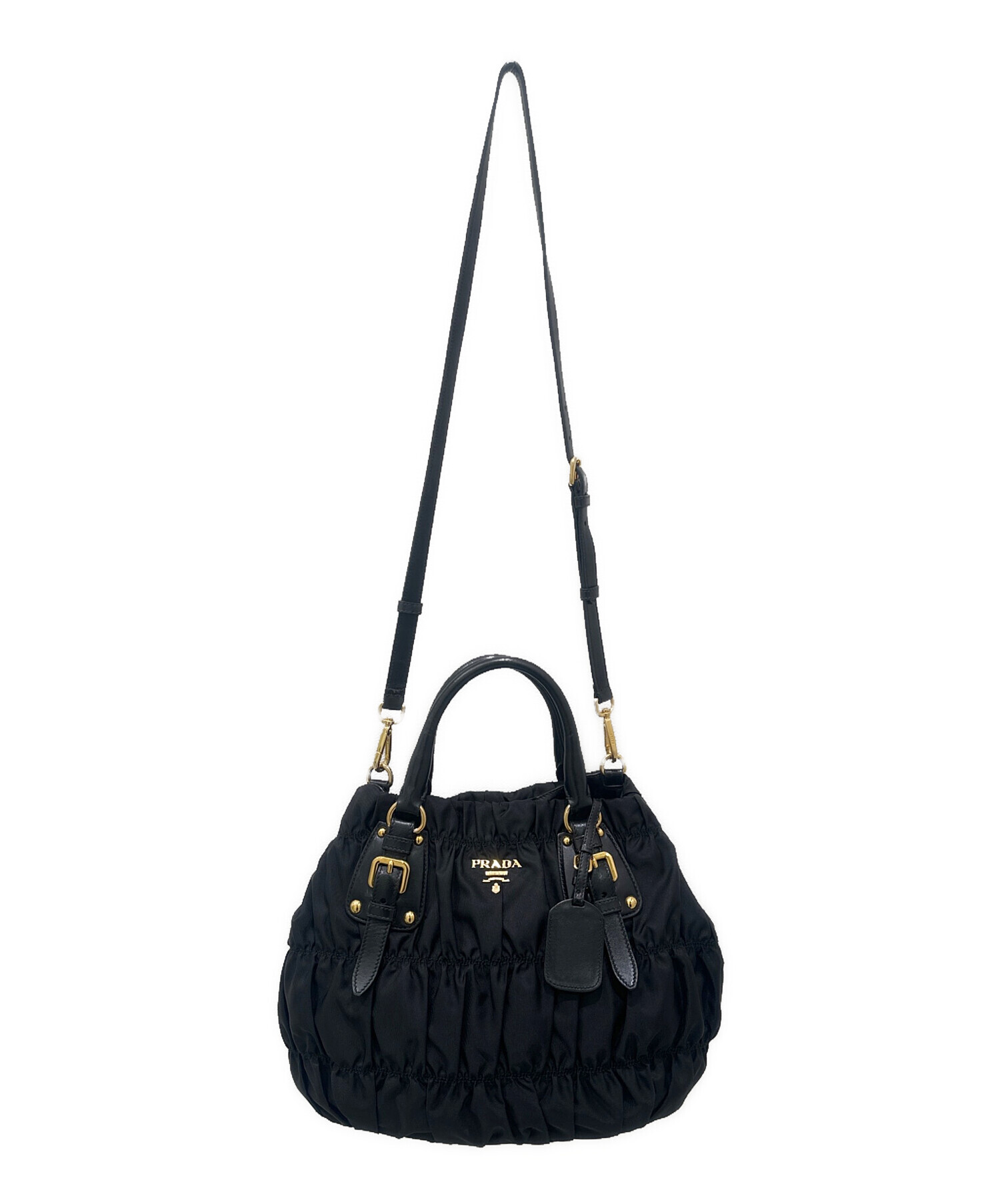 | スタッフコメント | PRADAのギャザーバッグでございます。500mlペットボトルが入り、小さいポーチなどもが入る容量が魅力ですまた、ハンドバッグだけでなくショルダーバッグとしてもご利用いただけます。 |