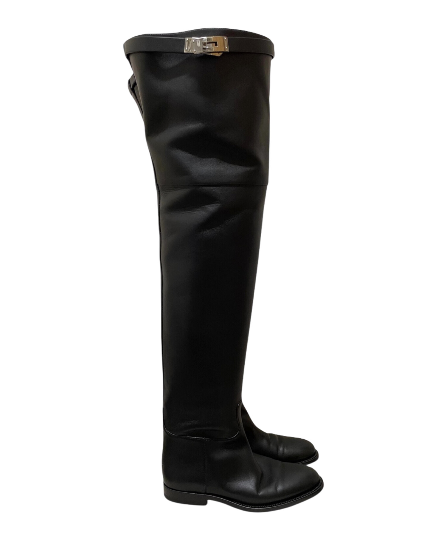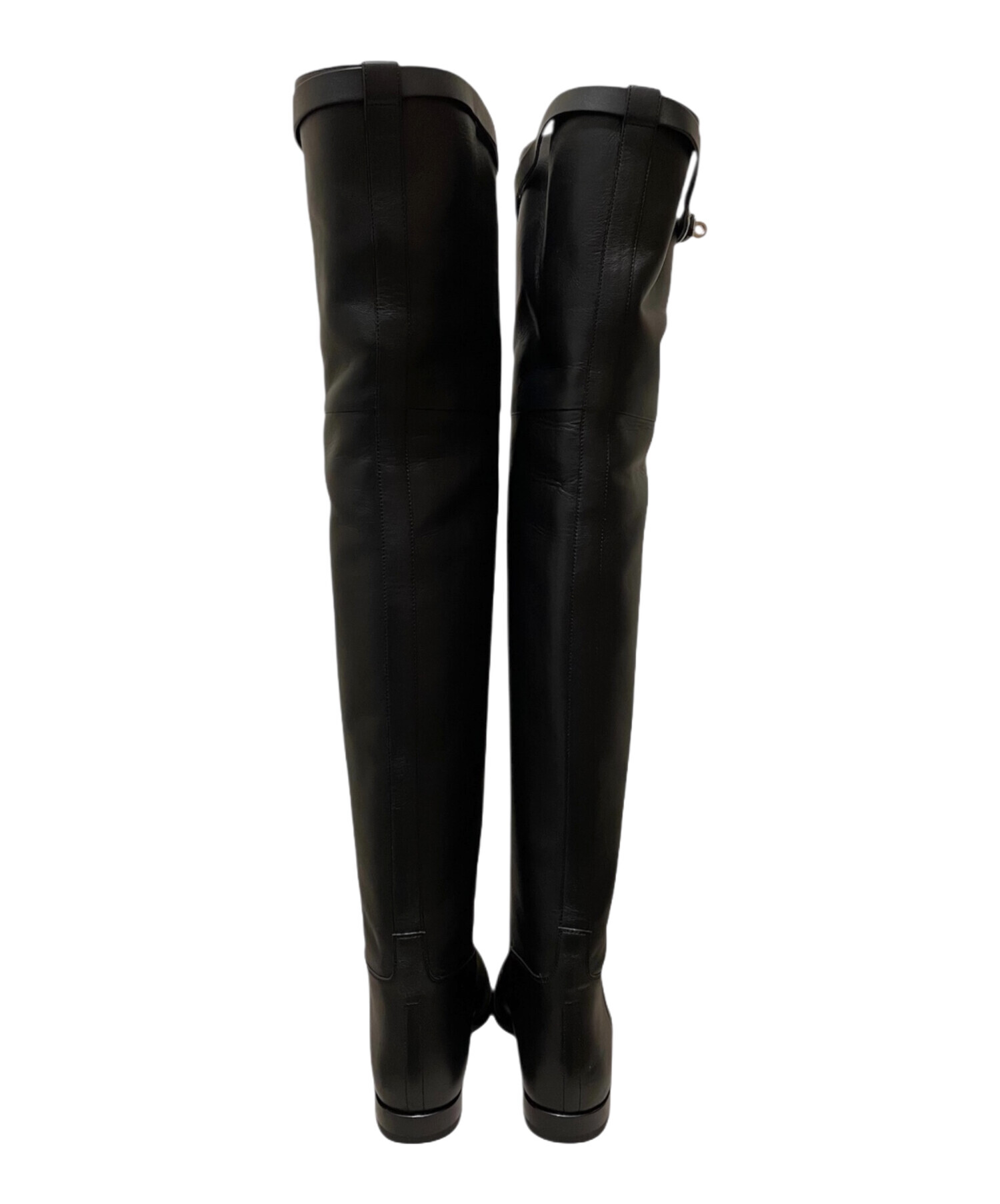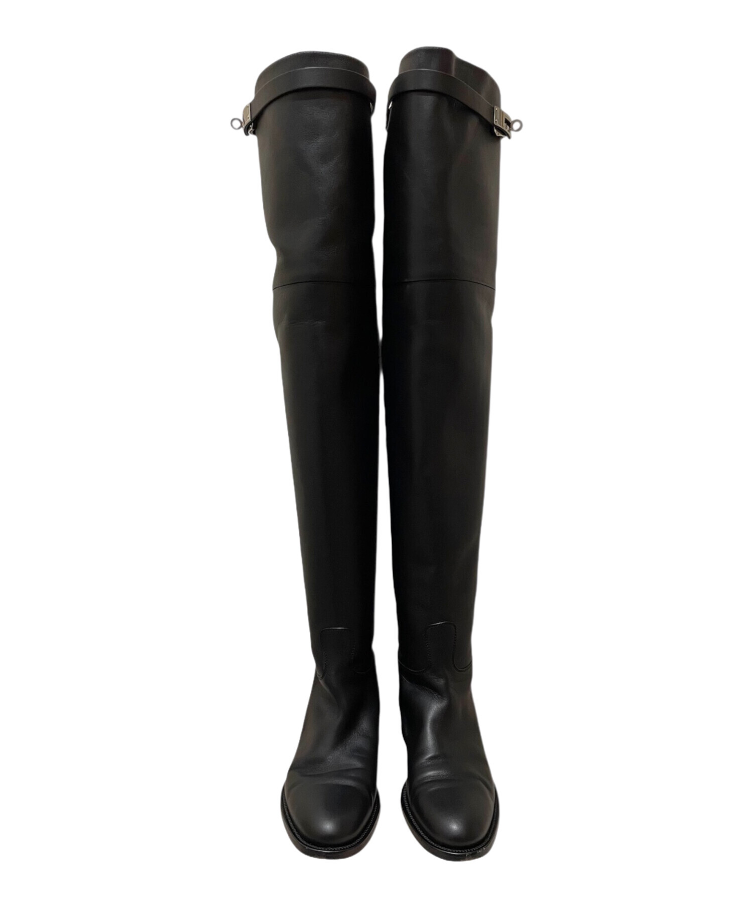 | スタッフコメント | 洗練された佇まいが魅力の「ケリーバックルサイハイブーツ」でございます。エルメスを象徴するケリーバックルがアクセントとなり、上品さとモード感を兼ね備えています。ブラック×シルバー金具の組み合わせがクールで洗練された印象を演出し、スタイルを引き締めてくれる一足です。スカートにもパンツスタイルにも合わせやすく、秋冬のコーディネートを格上げしてくれる逸品です。 |