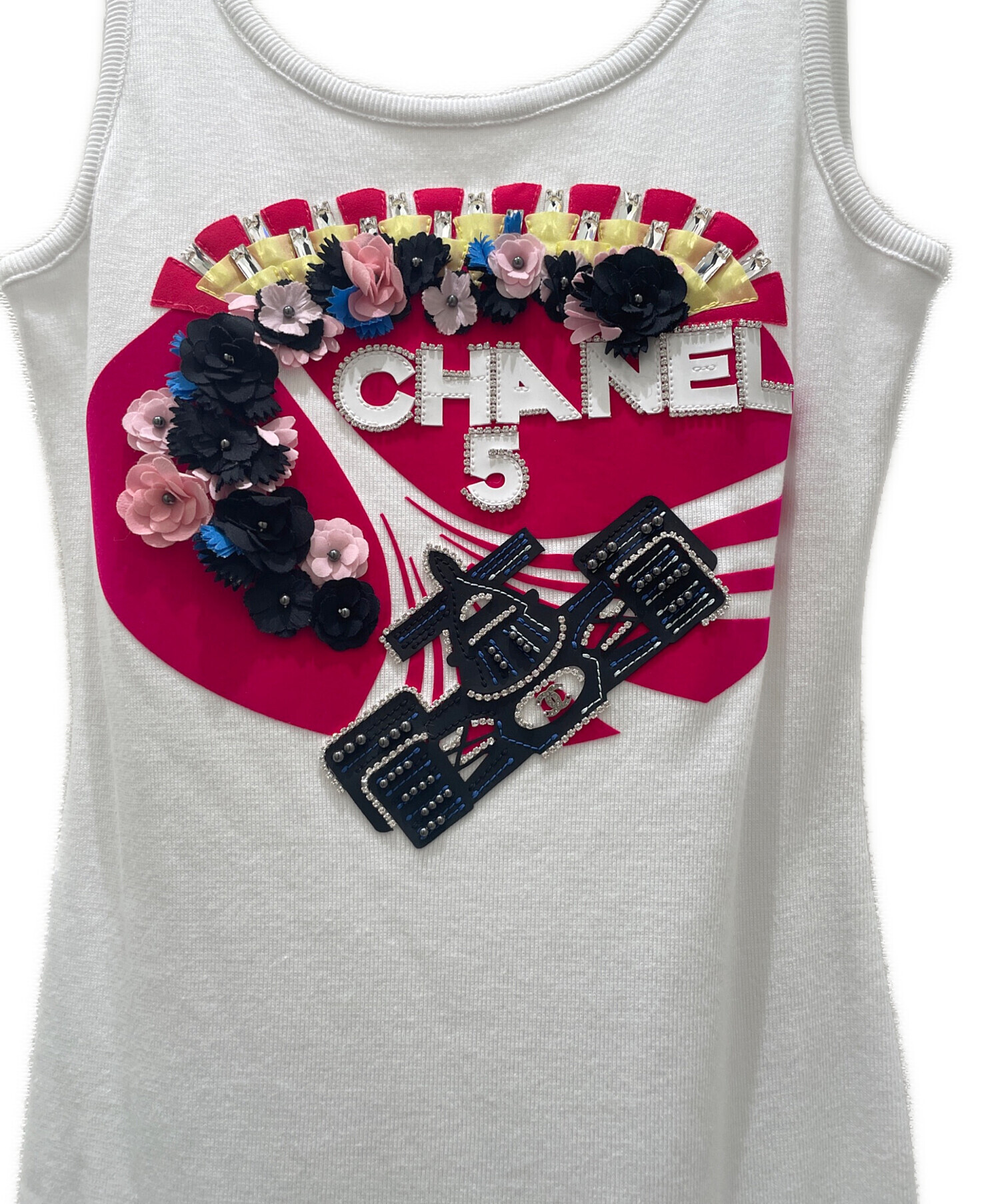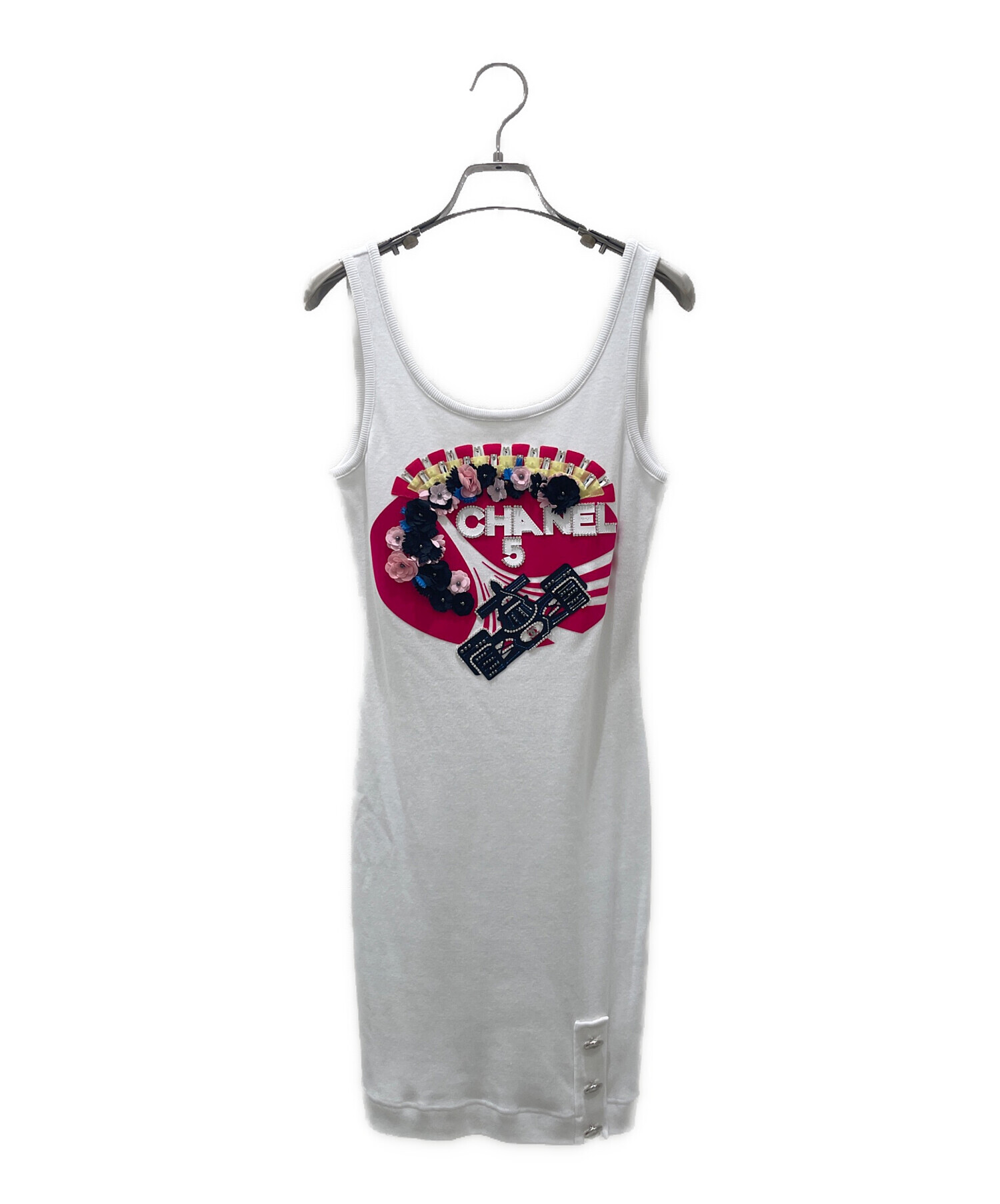 | スタッフコメント | シャネルのフォーミュラ1ノースリーブワンピースでございます。背面のプリントとラインストーン等の装飾が魅力的な一着です。上質なコットン素材で着心地も良く、細部まで作りこまれたアイテムです。 |