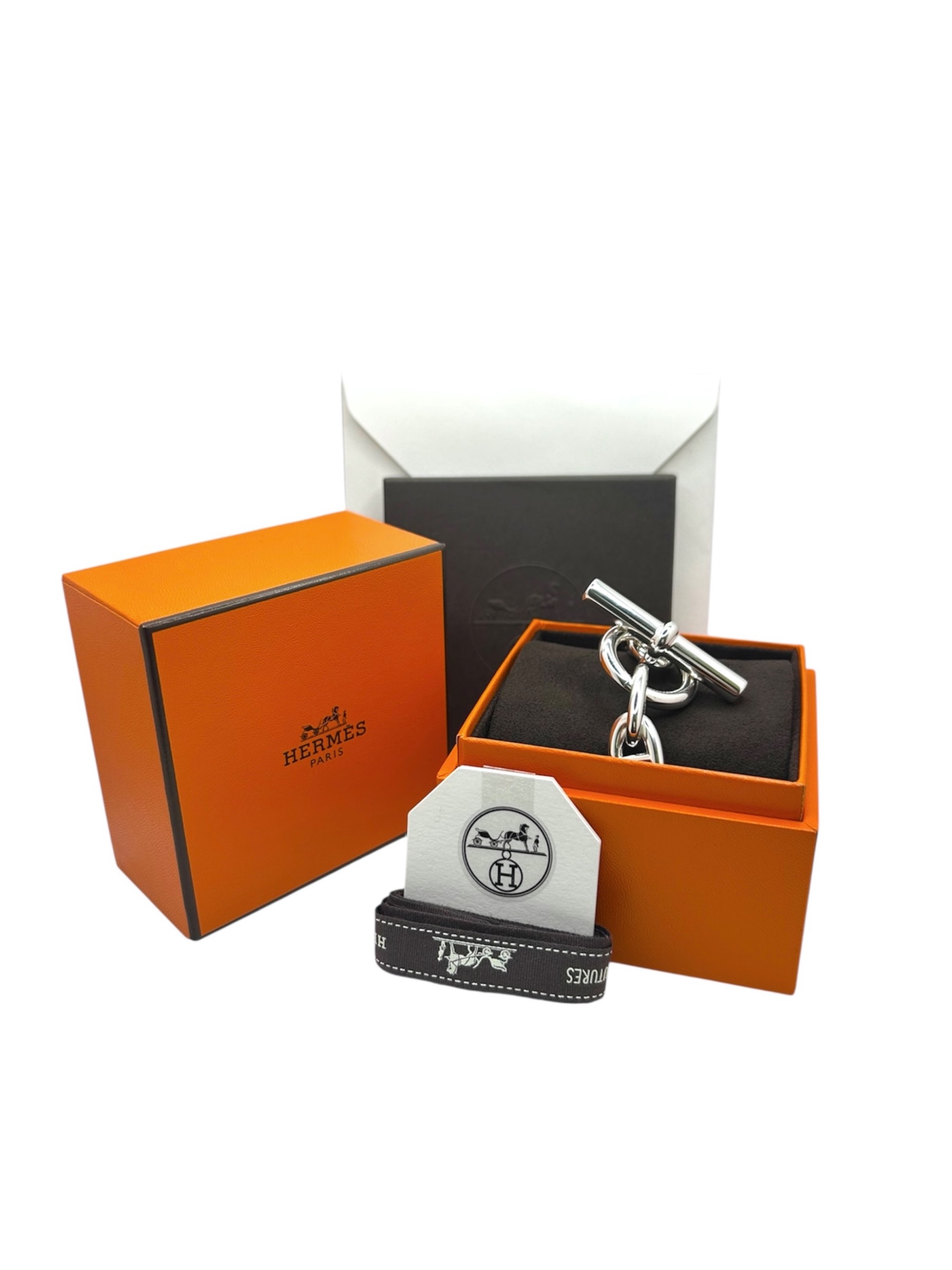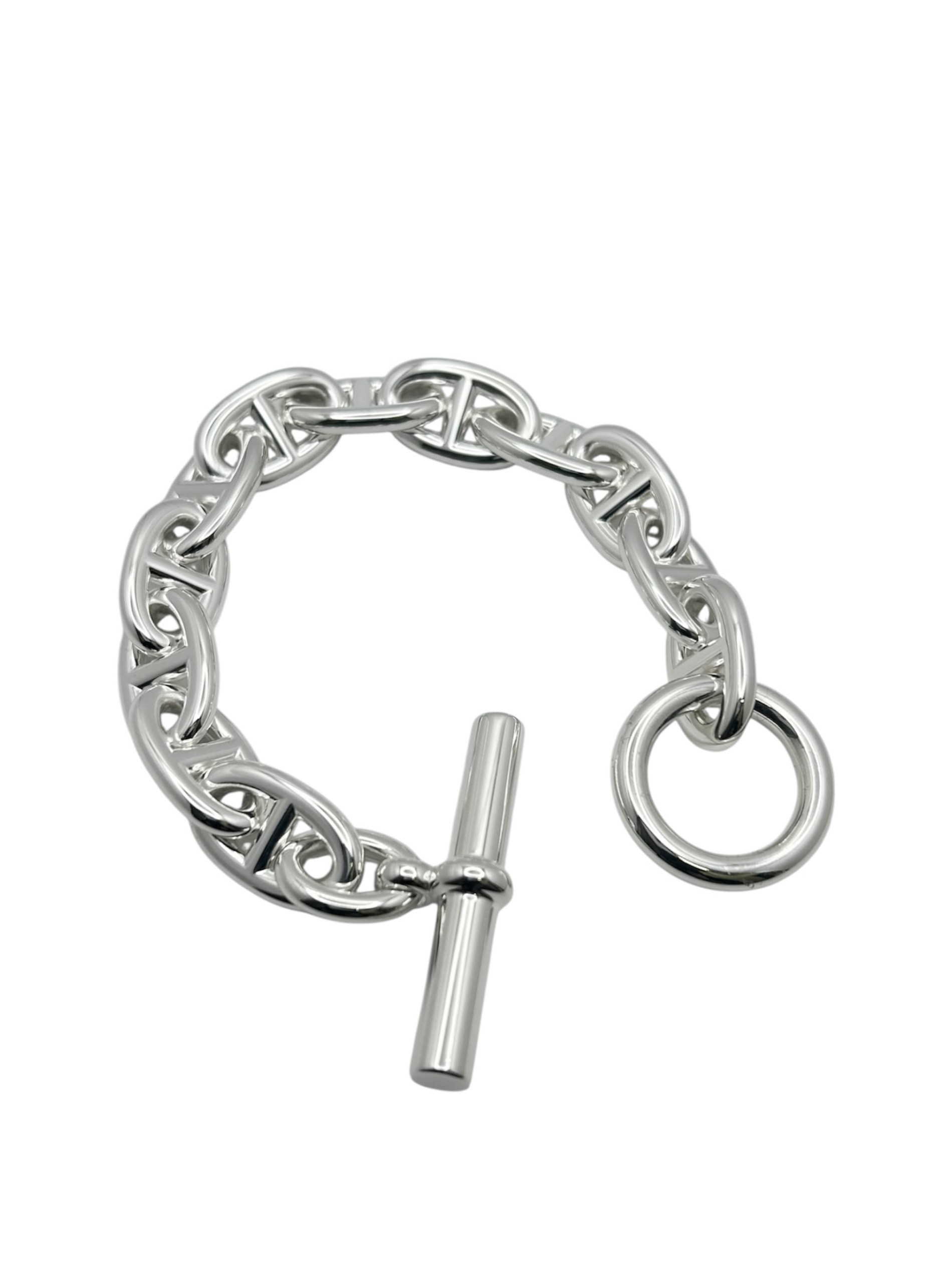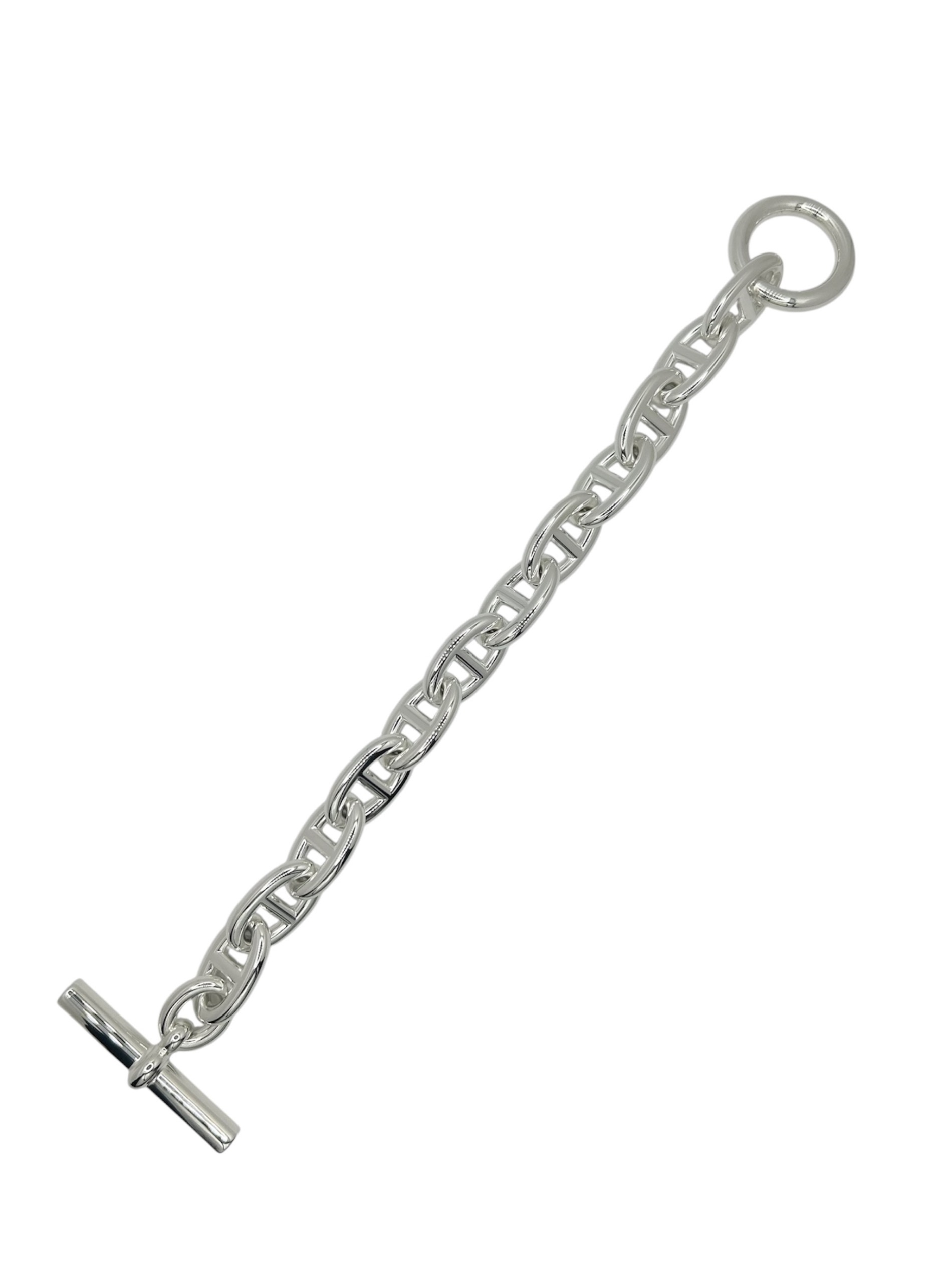 | スタッフコメント | HERMESのアイコニックアクセサリー「シェーヌダンクル」でございます。サイズはTGMとなっており、身に着けるだけで手元に存在感を出してくれるボリューム充分なブレスレットです。シルバー925素材を使用しているため、錆びにくく長くご愛用でき、また経年変化お楽しみいただけるアイテムとなっております。 |