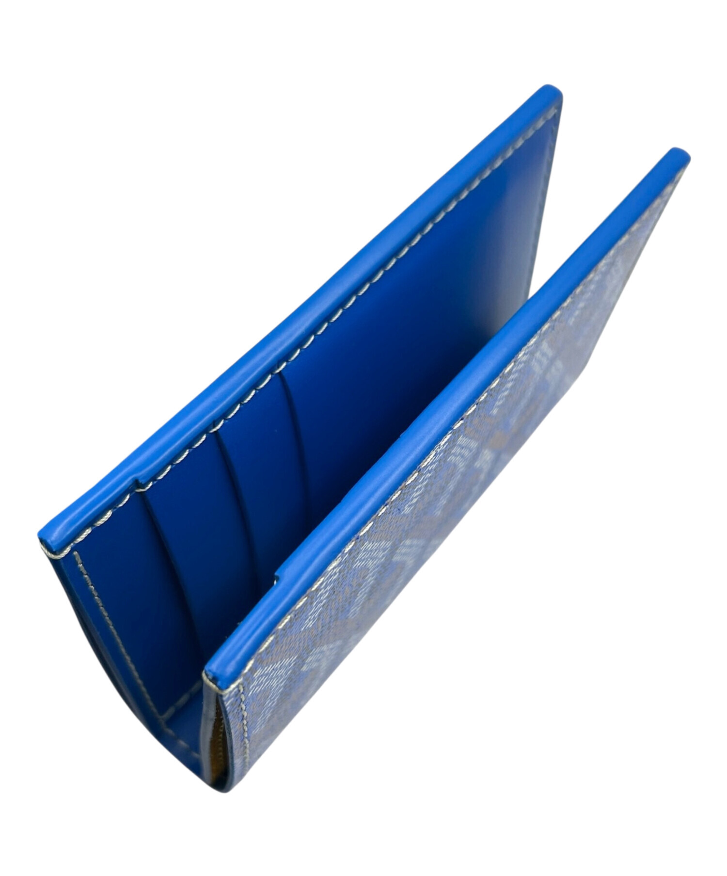 | スタッフコメント | 鮮やかなブルーのゴヤールディンキャンバスが目を惹く、サン・ピエールカードホルダーでございます。コンパクトながらカード収納力も高く、スリムな設計でポケットにもスマートに収まります。内側にはイエローのゴートスキンライニングを採用し、開くたびに華やかさを感じられる一品。PVC×レザー素材で軽量かつ耐久性もあり、日常使いにもおすすめです。 |