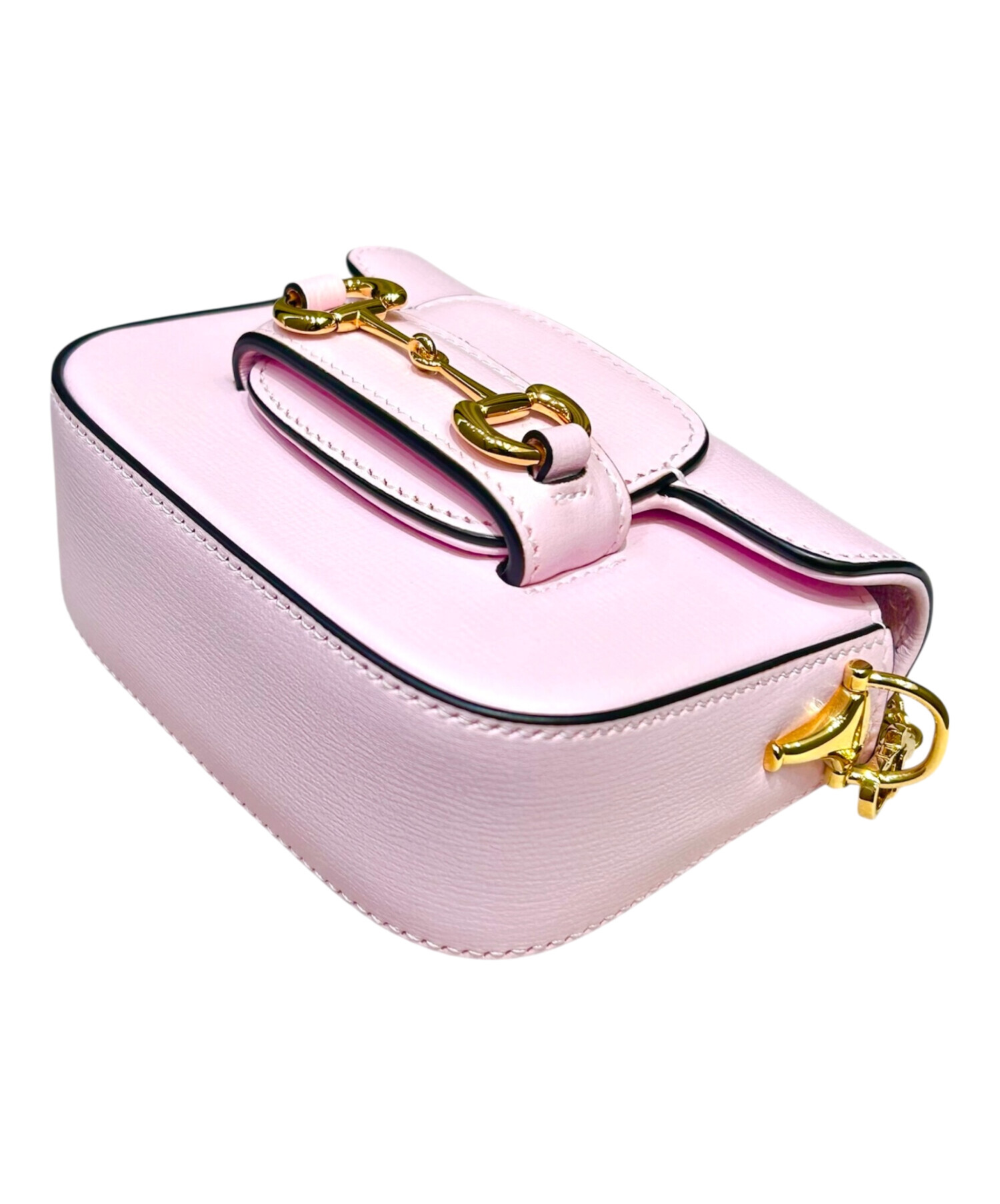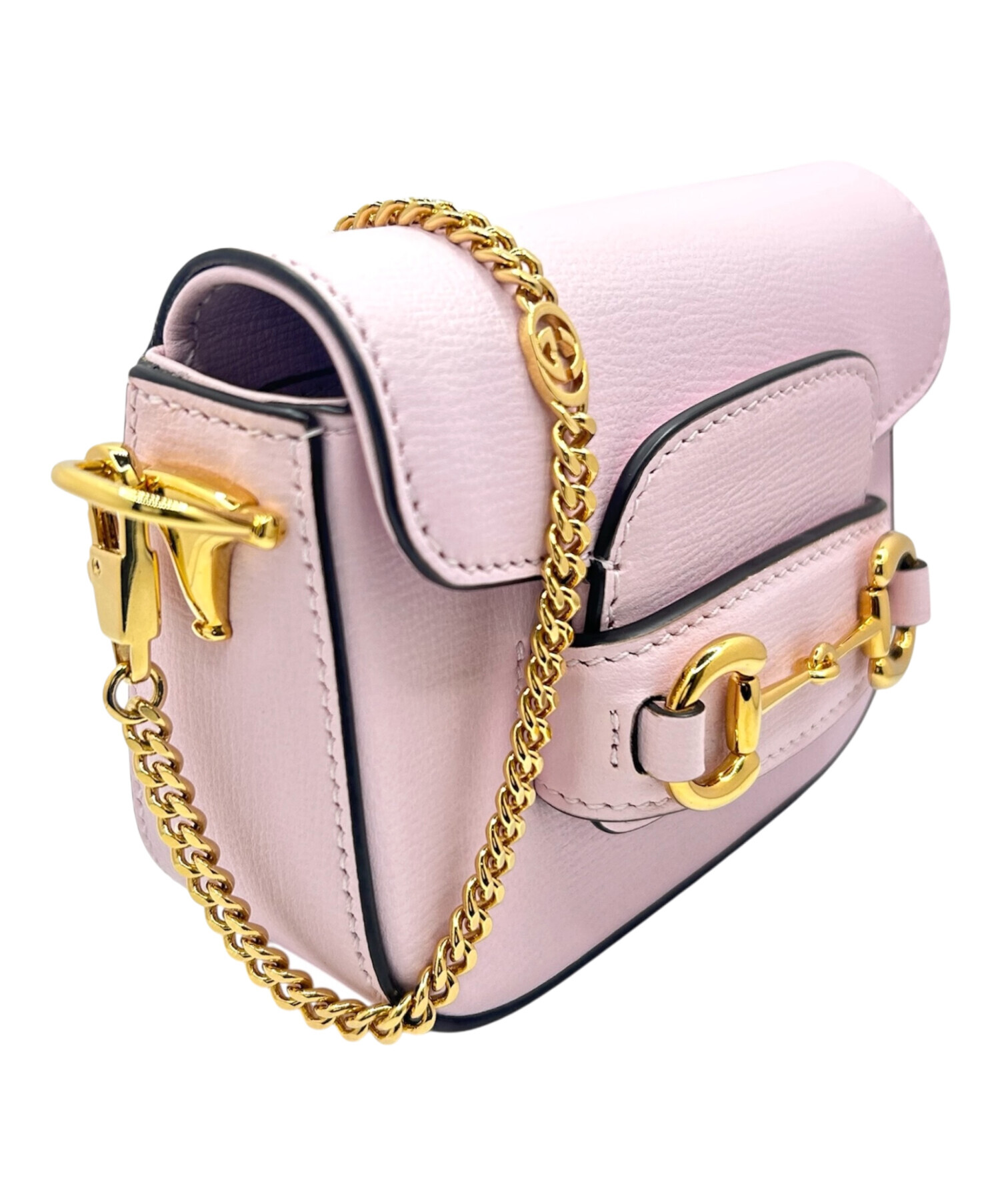 | スタッフコメント | グッチを代表する「ホースビット 1955」ラインより、愛らしいナノサイズのバッグでございます。柔らかなピンクカラーに煌めくゴールド金具が映え、フェミニンで華やかな印象を演出。コンパクトながら必要最低限の小物を収納でき、ショルダーストラップ付きでデイリーからお出かけまで幅広く活躍します。 |