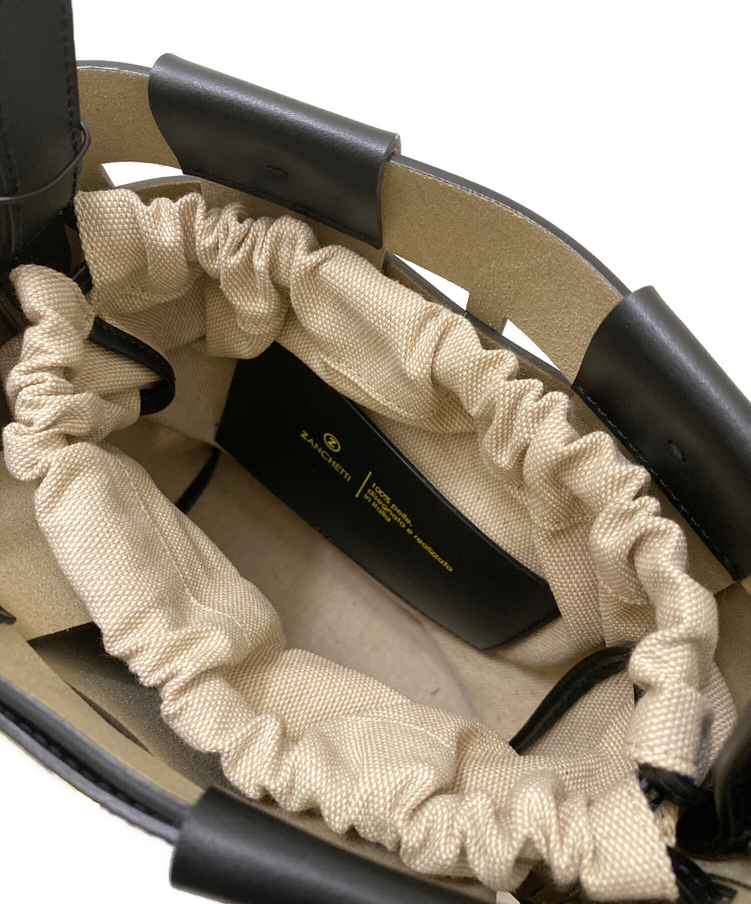 | スタッフコメント | イタリアの卓越したクラフツマンシップが光る、ZANCHETTI(ザンケッティ)のアイコンバッグ「WOVEN BUCKET SMALL」。丁寧に編み込まれた上質なレザーが、美しい立体感とラグジュアリーな存在感を演出します。シックなブラックカラーは、どんなコーディネートにも溶け込みながら、品格をプラスします。 |