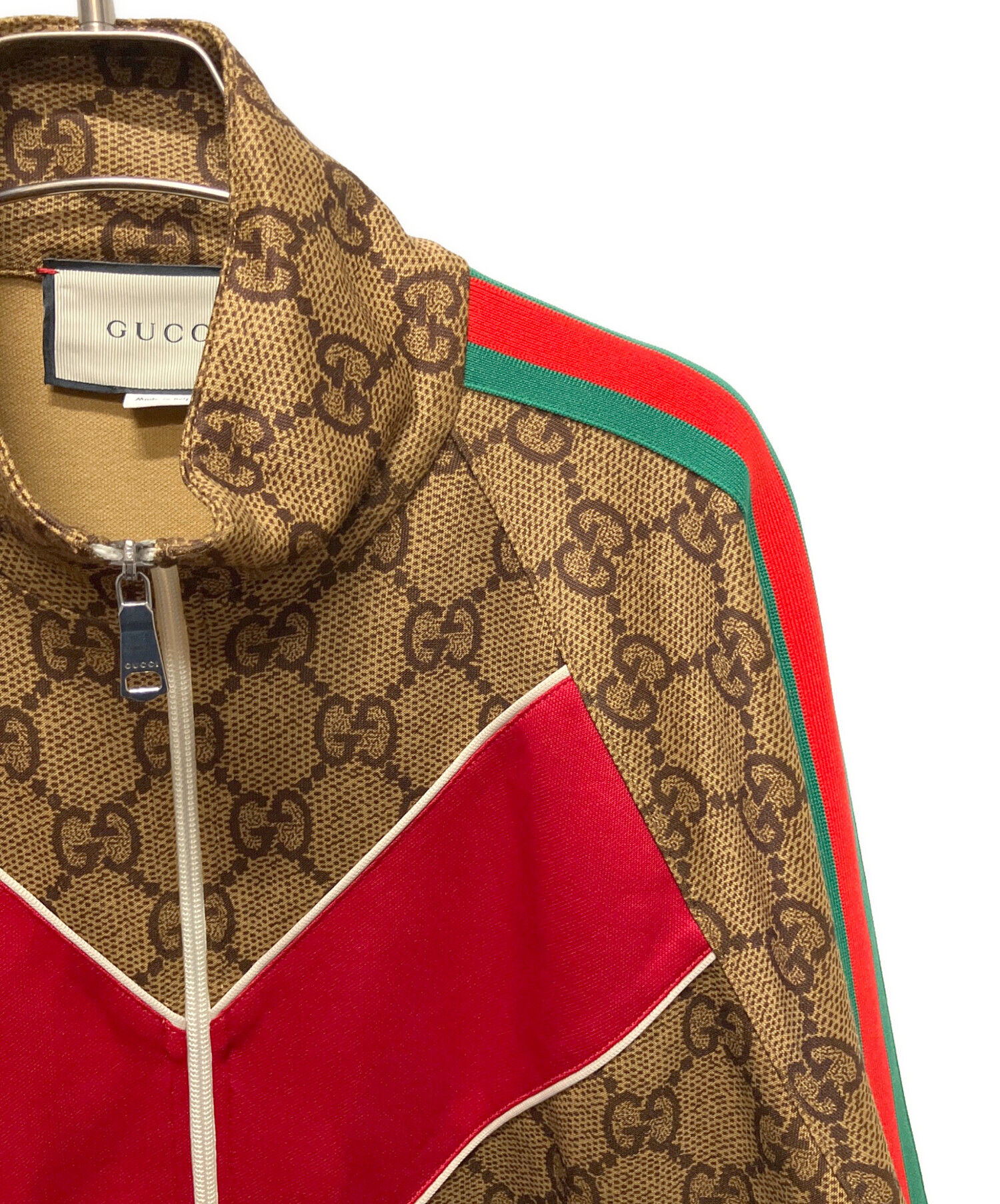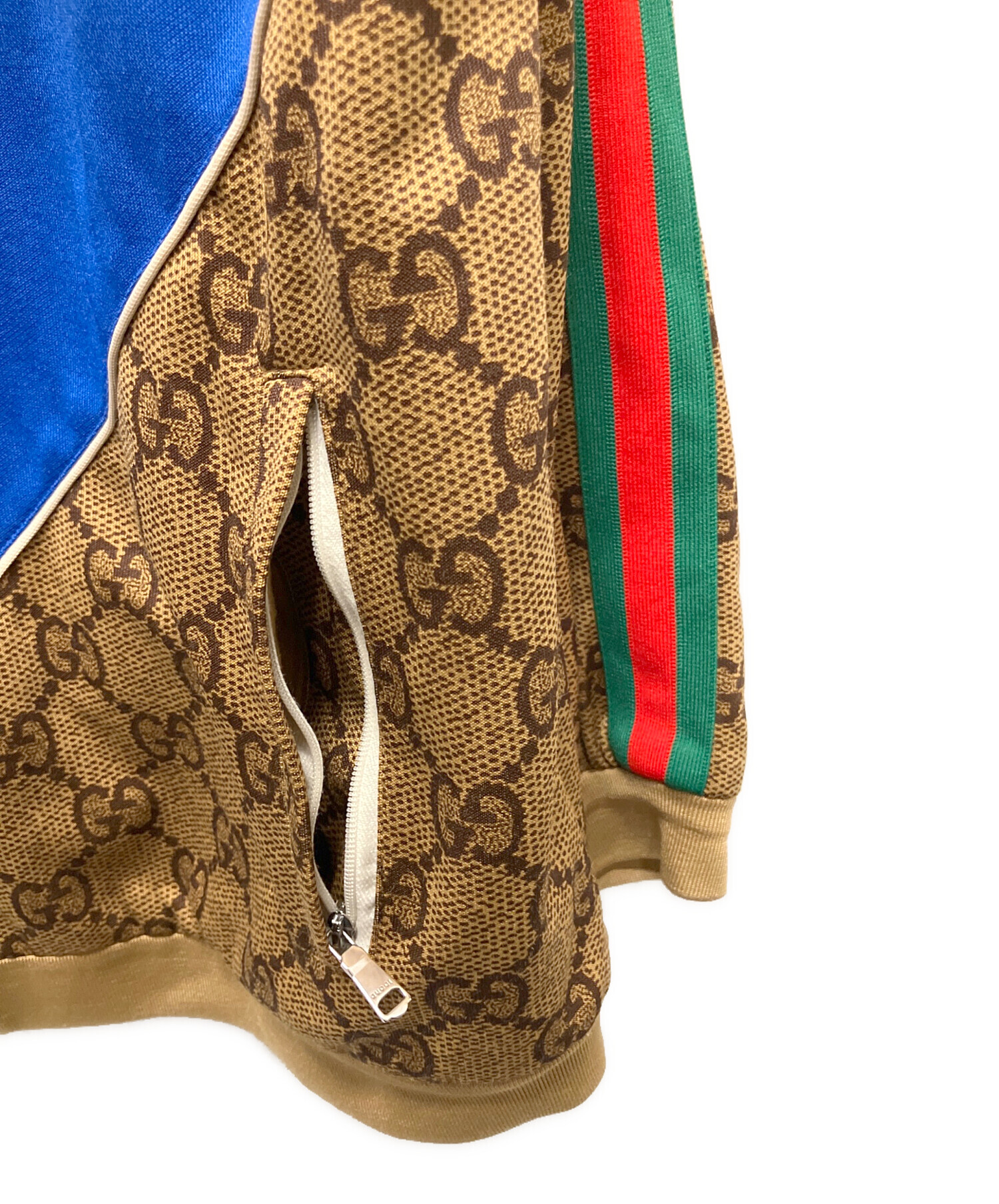 スタッフコメント ブラウンを基調に、レッドとブルーのラインが映える配色が印象的な、GUCCIの「GGテクニカルジャージジャケット」でございます。滑らかなテクニカルファブリックを使用し、軽やかで快適に着心いただけます。ブランドを象徴するGGパターンを全面にあしらい、スポーティなデザインの中にもエレガントな雰囲気を漂わせる一品です。
