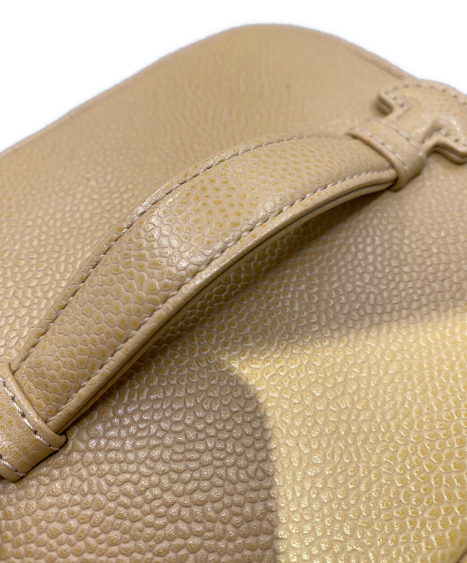 スタッフコメント 高級感あふれるキャビアスキン素材を使用したラグジュアリーなバニティバッグです。しっかりとしたレザーの質感と上品なフォルムが、日常のスタイルにエレガントなアクセントをプラス。収納力のある丸みのあるデザインで、収納性と実用性も◎。付属のGカード・袋付きで保管にも安心のおすすめアイテムです。