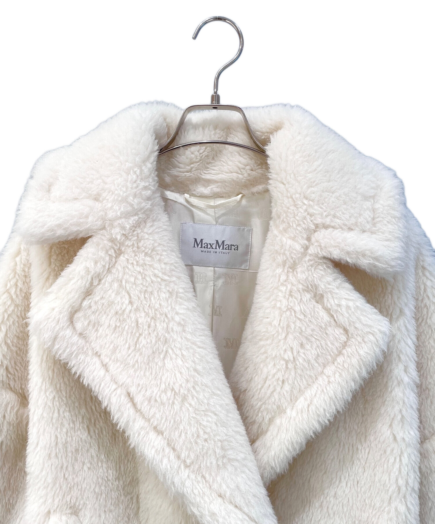 | スタッフコメント | MaxMara(マックスマーラ)のテディベアショートコートでございます。柔らかなアルパカ混素材で保温性が高く、程よいショート丈でコーディネートしやすい一着です。シンプルで上品なデザインは様々なシーンで活躍いたします。軽やかな着心地で冬のお出かけに最適な使い勝手の良いアウターです。 |