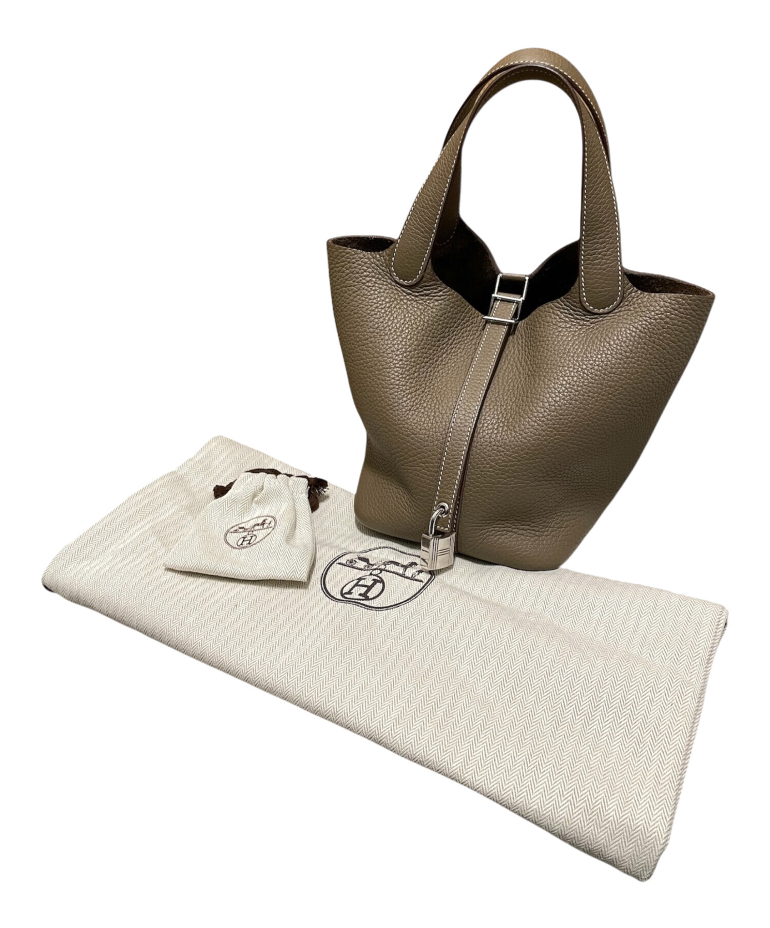 | スタッフコメント | 柔らかなトリヨンクレマンス素材を使用し、上品なエトゥープカラーのピコタンロックPMでございます。手元に収まりやすいサイズ感で、幅広いスタイルに馴染みます。シンプルながら高級感のあるデザインで、長く愛用できるアイテムです。 |