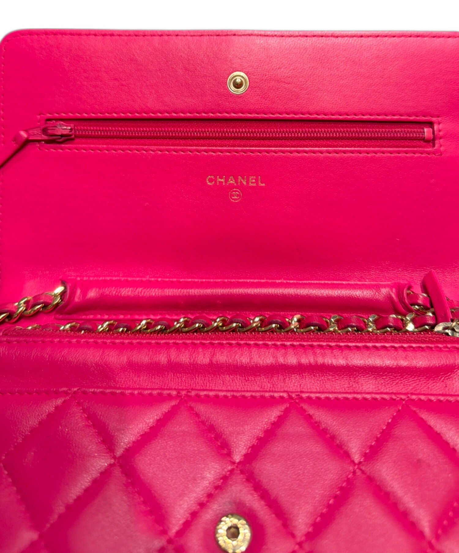 • CHANEL(シャネル)CHANEL (シャネル) マトラッセチェーンウォレット ショルダーウォレット ショッキングピンクの古着・服飾アイテム 背面小ヨゴレ有