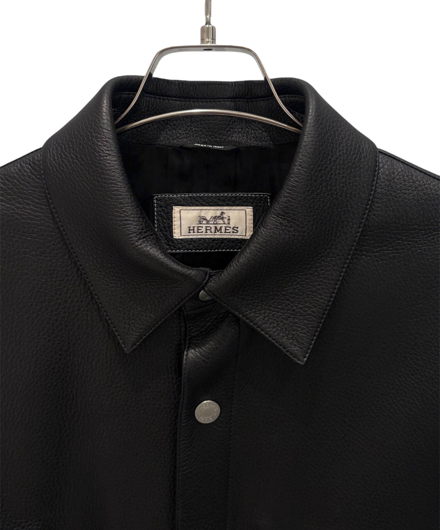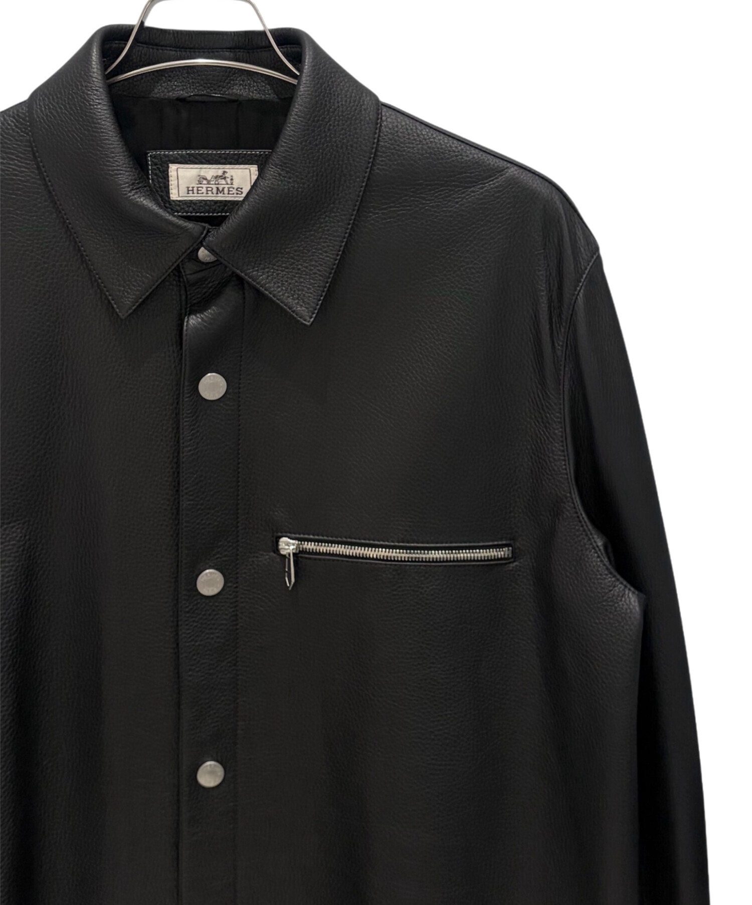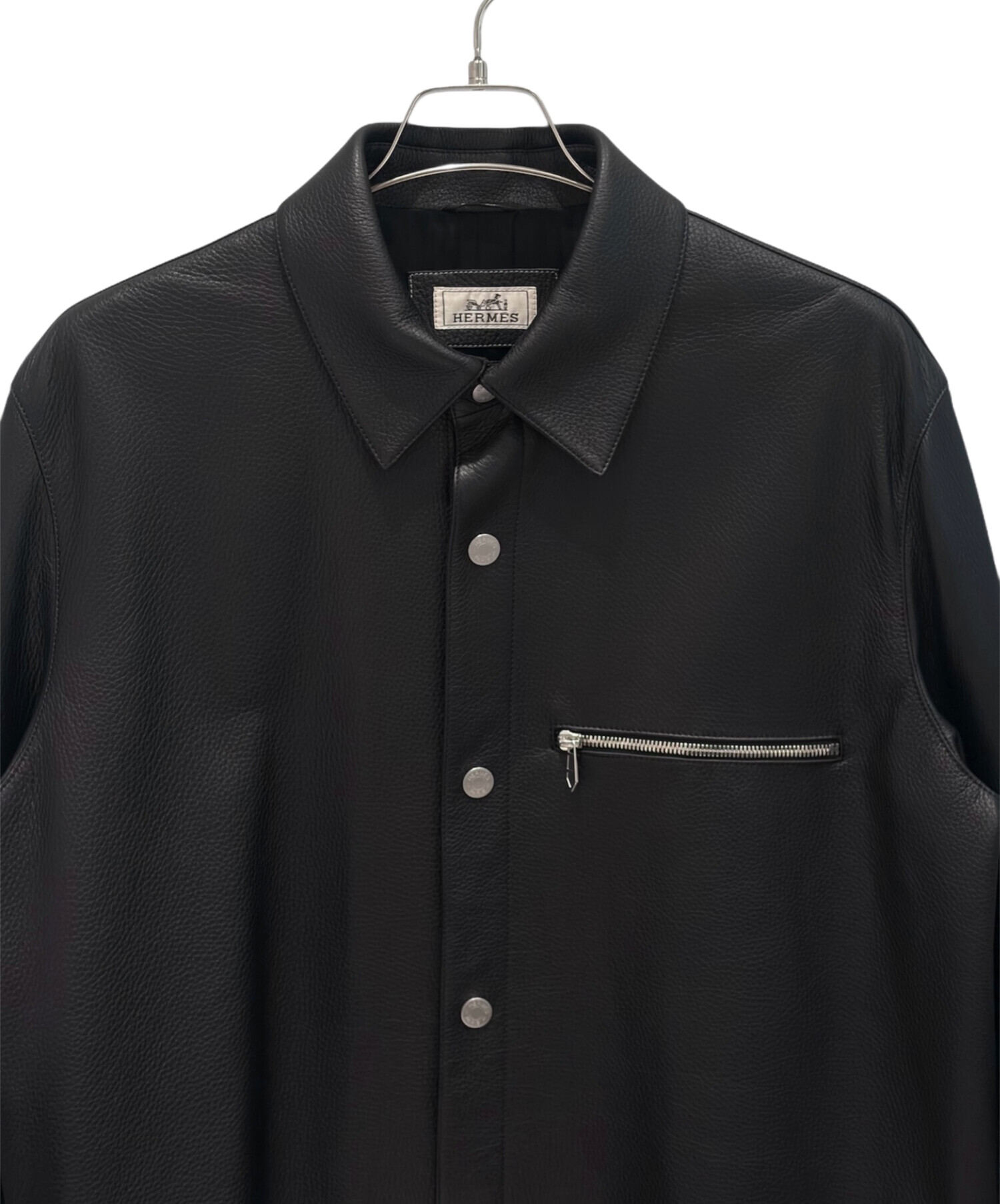 | スタッフコメント | 上質な鹿革を贅沢に使用した、エルメスの「オーバーシャツ」でございます。しなやかで吸い付くような革質は、着用時の軽さと快適さが魅力です。ノワールの落ち着いた色味に、シンプルなスナップボタンと胸元のジップポケットが程よいアクセントとなり、アウターとしてもインナーとしても活躍。エルメスならではの素材選びと仕立ての良さを存分に感じられる一着です。 |