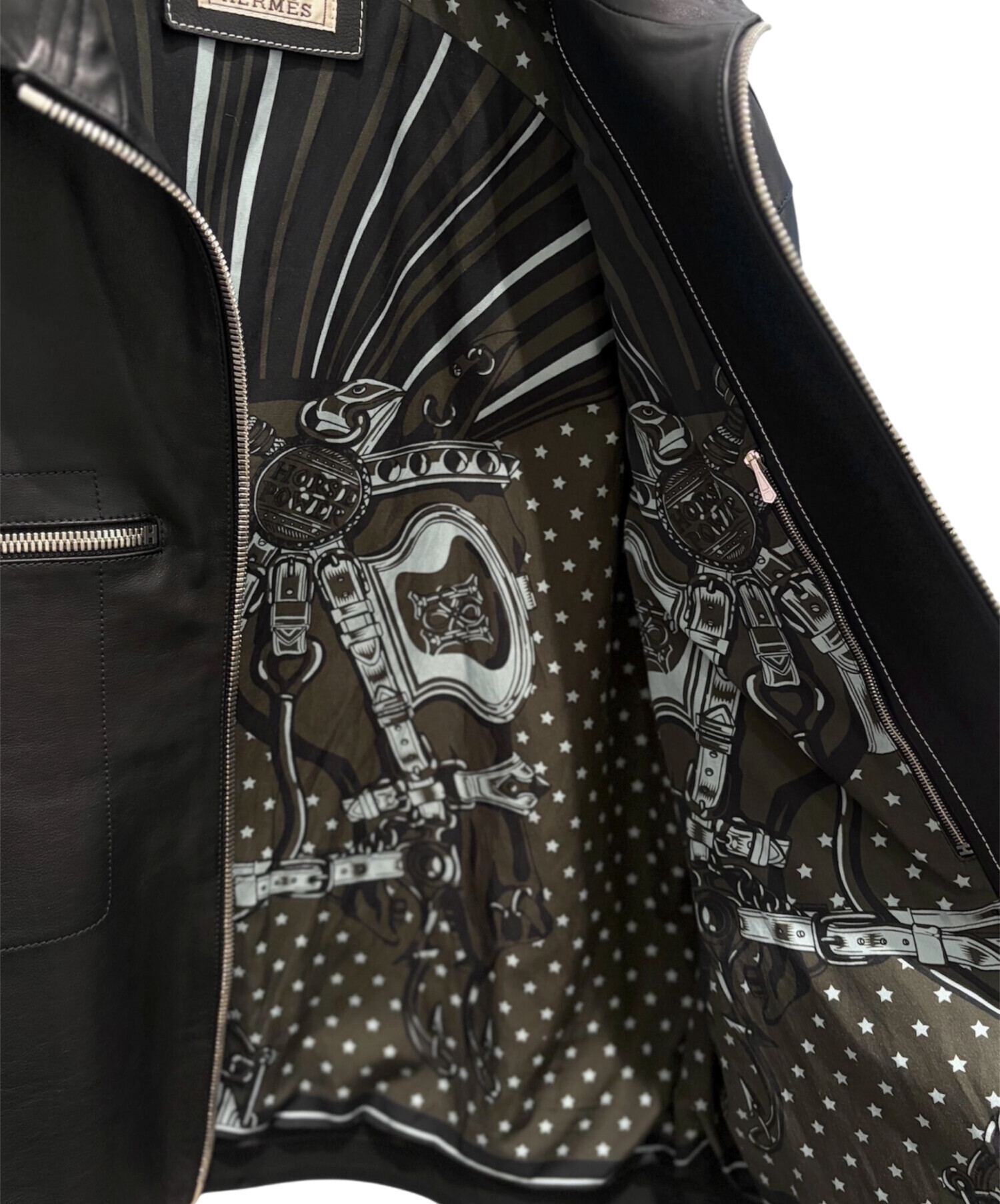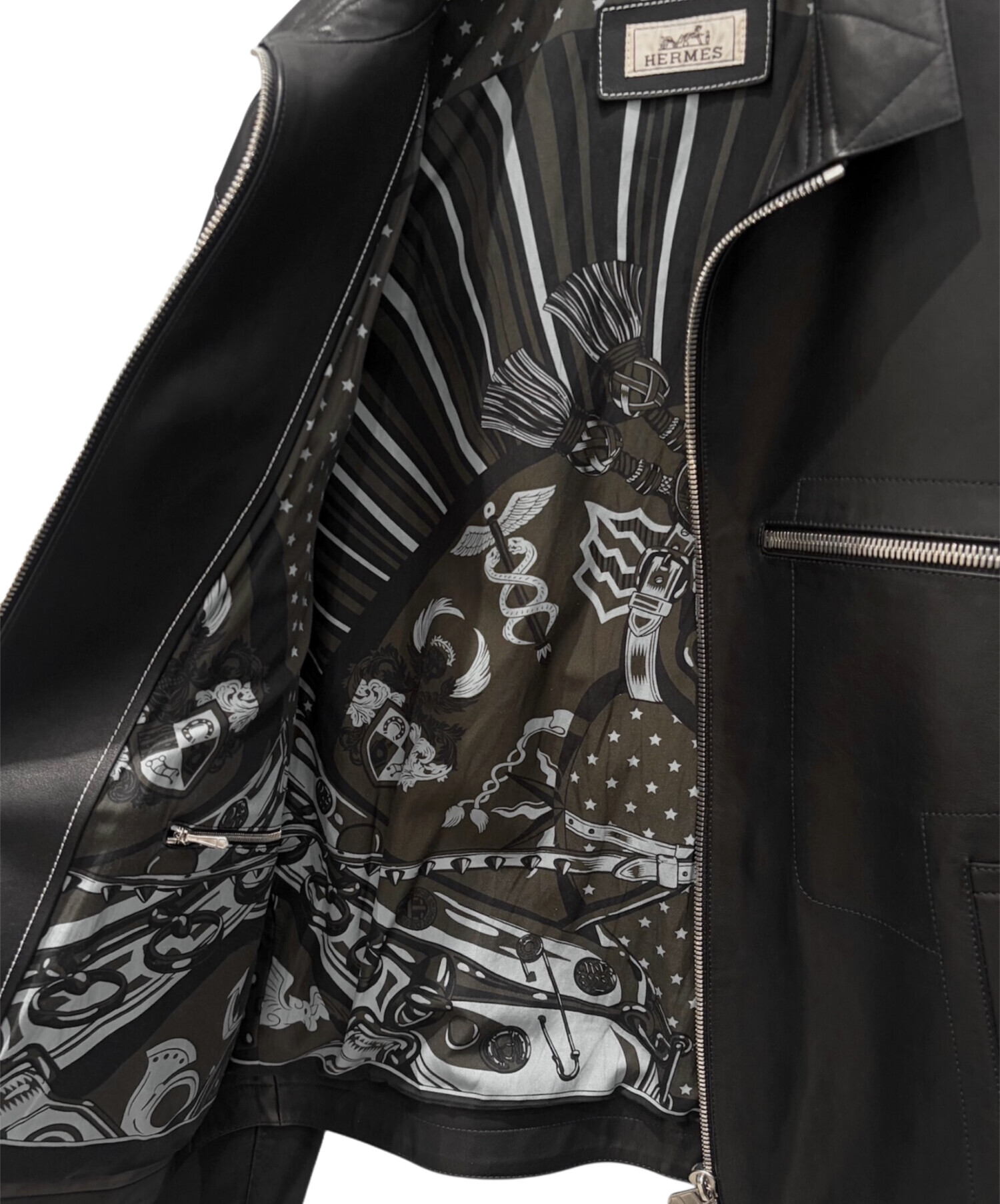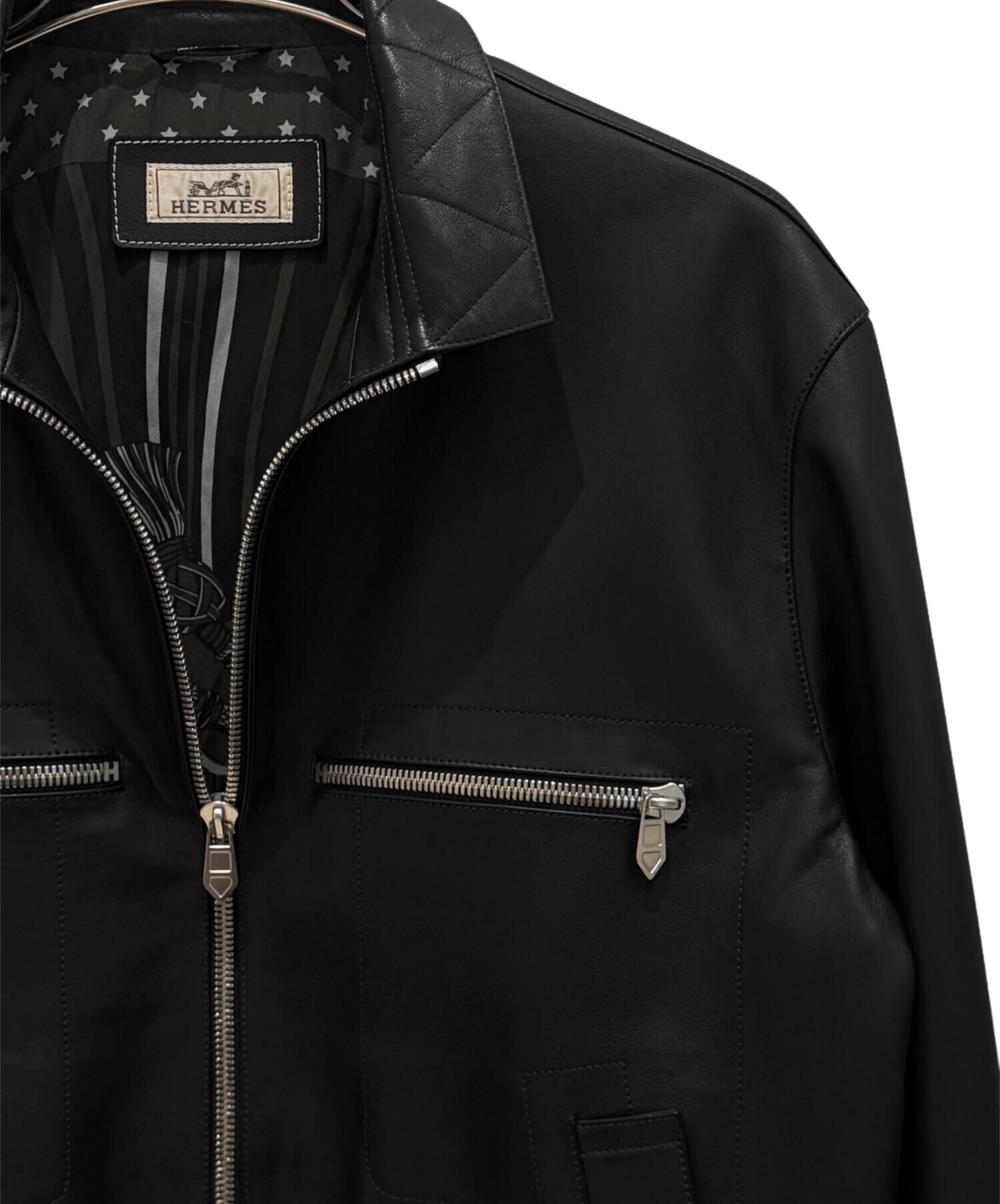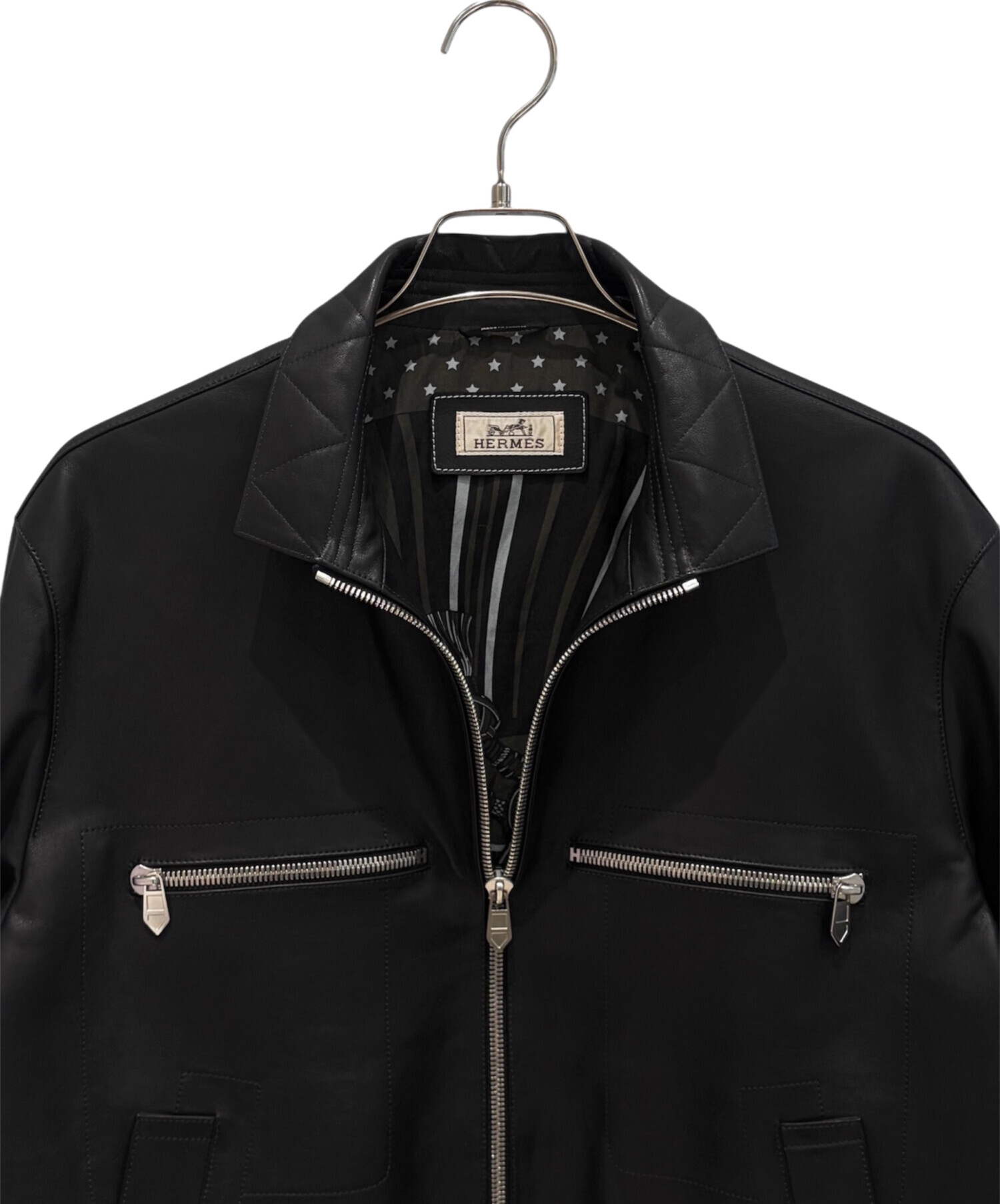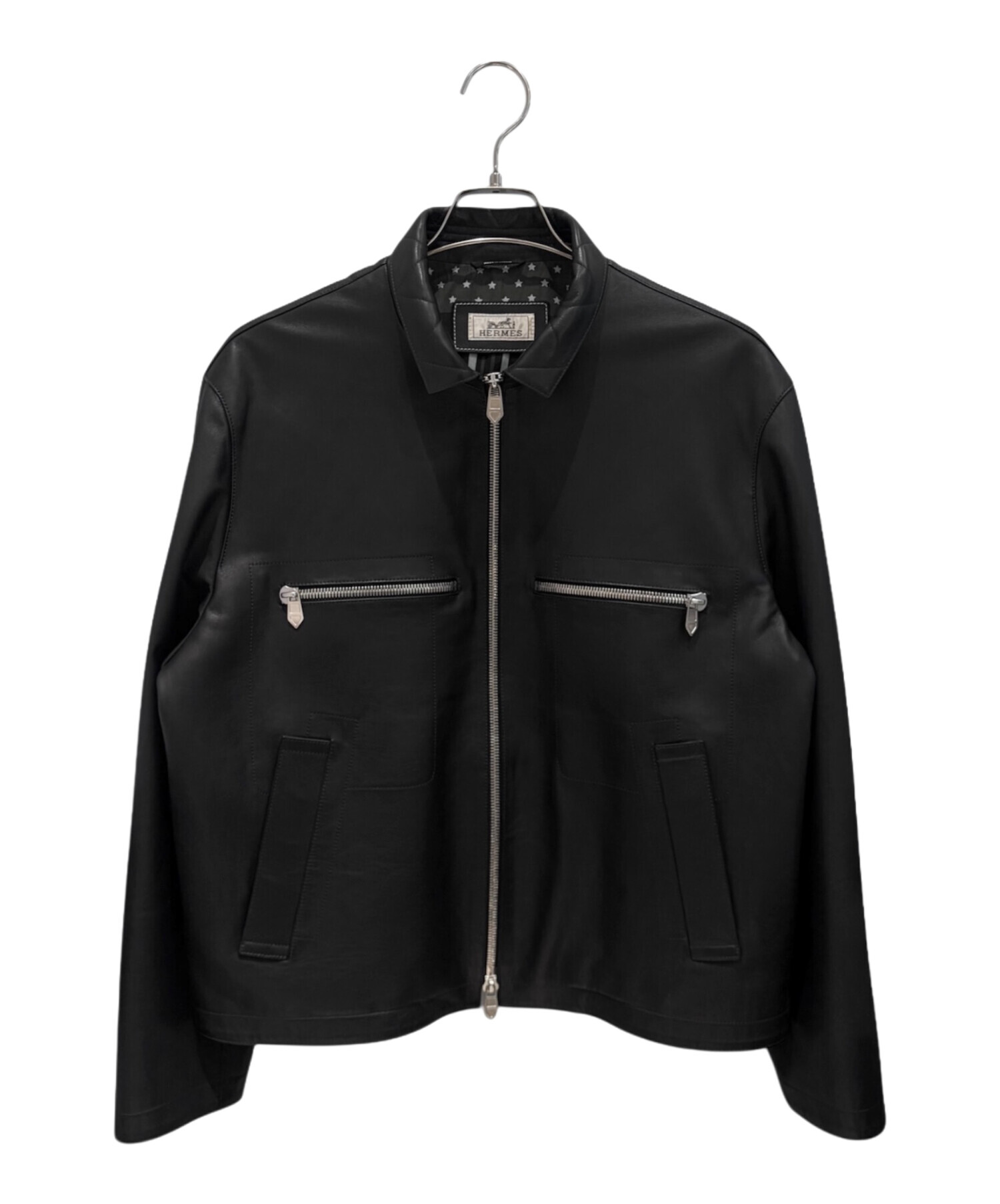 | スタッフコメント | 上質なレザーを使用したHERMESのレザージャケットでございます。しなやかで滑らかな質感が特徴で、着用時のシルエットも非常に美しく仕上がっています。無駄のないミニマルなデザインに、シルバージップが程よいアクセントとなり、上品さと男らしさを兼ね備えた一着です。カジュアルからきれいめまで幅広いスタイリングに対応し、長くご愛用いただける逸品です。 |