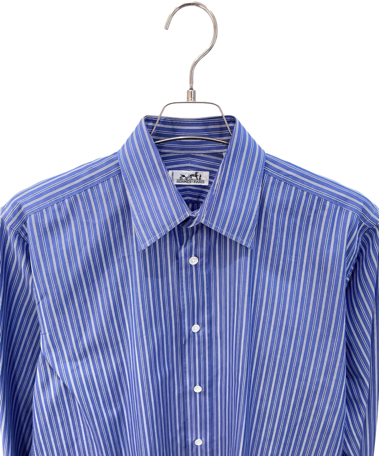 | スタッフコメント | HERMES(エルメス)のゴールドセリアボタン ストライプシャツは、上質な素材と丁寧な仕立てが際立つ一着。洗練されたストライプ柄にブランドを象徴するゴールドセリアボタンがアクセントとなり、大人の品格を演出します。程よいサイズ感でオンオフ問わず着回ししやすく、一枚で爽やかな印象に。上質感と日常使いのバランスが取れたアイテムです。 |