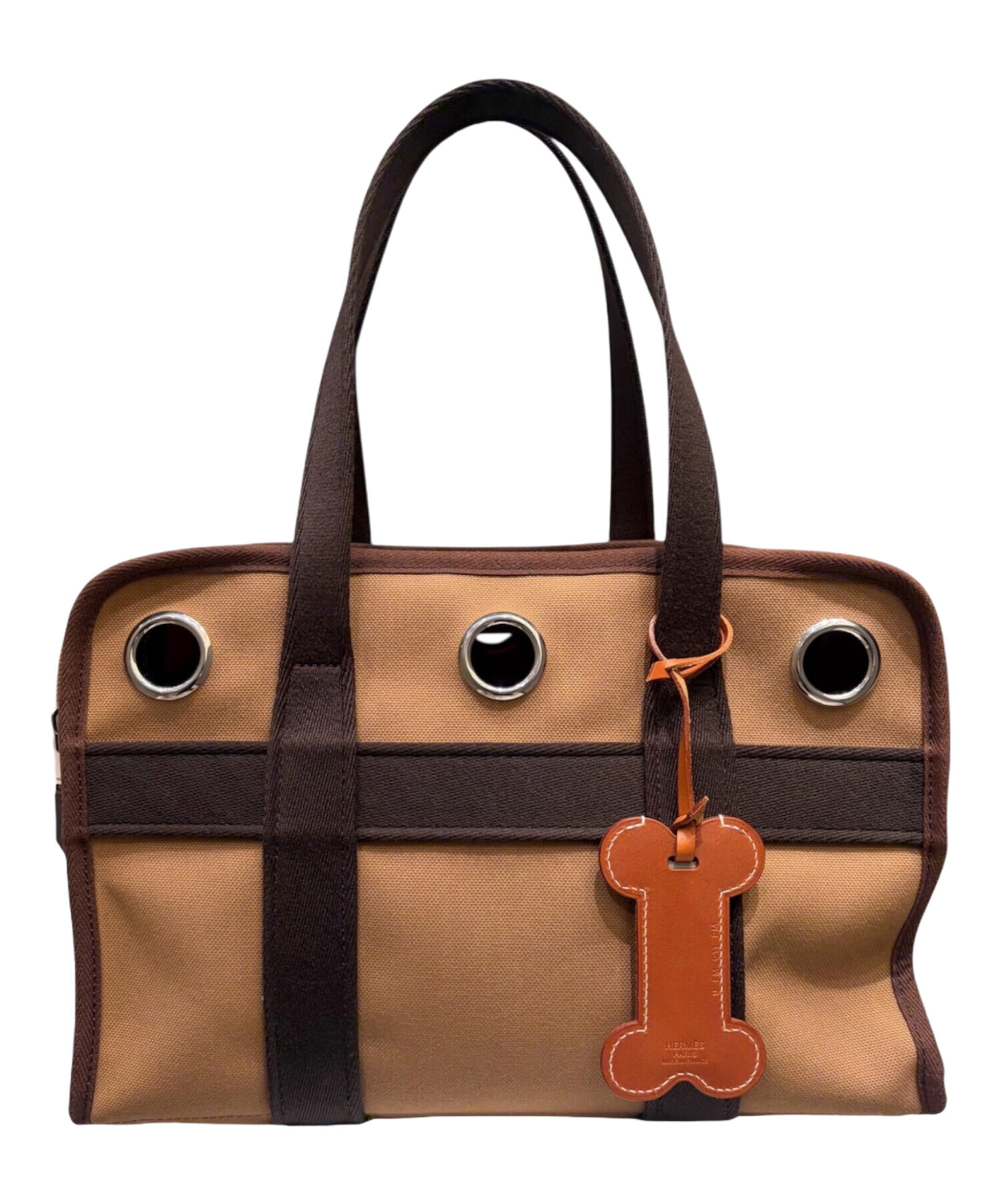 スタッフコメント HERMESの犬用バッグでございます。小型犬とのお出かけを上品に演出するペットキャリーバッグで、撥水性と通気性に配慮した実用的な設計に加え、セリエ刻印入りスナップや上質なレザーディテールなど、ブランドらしい気品が随所に感じられます。軽量で持ち運びやすく、日常使いから移動シーンまで快適に対応。機能性とラグジュアリーを兼ね備えたアイテムです。