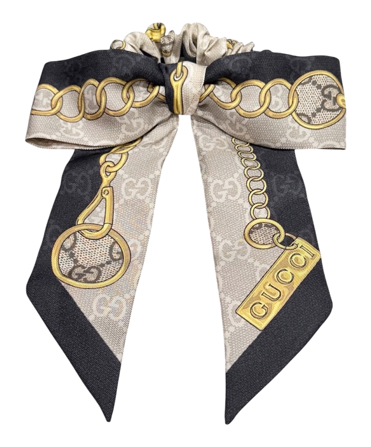 スタッフコメント シンプルな色使いと柄が印象的な、GUCCIらしさを感じるシュシュです。リボンデザインが華やかで、髪に結ぶだけで装いをぐっと引き立ててくれます。