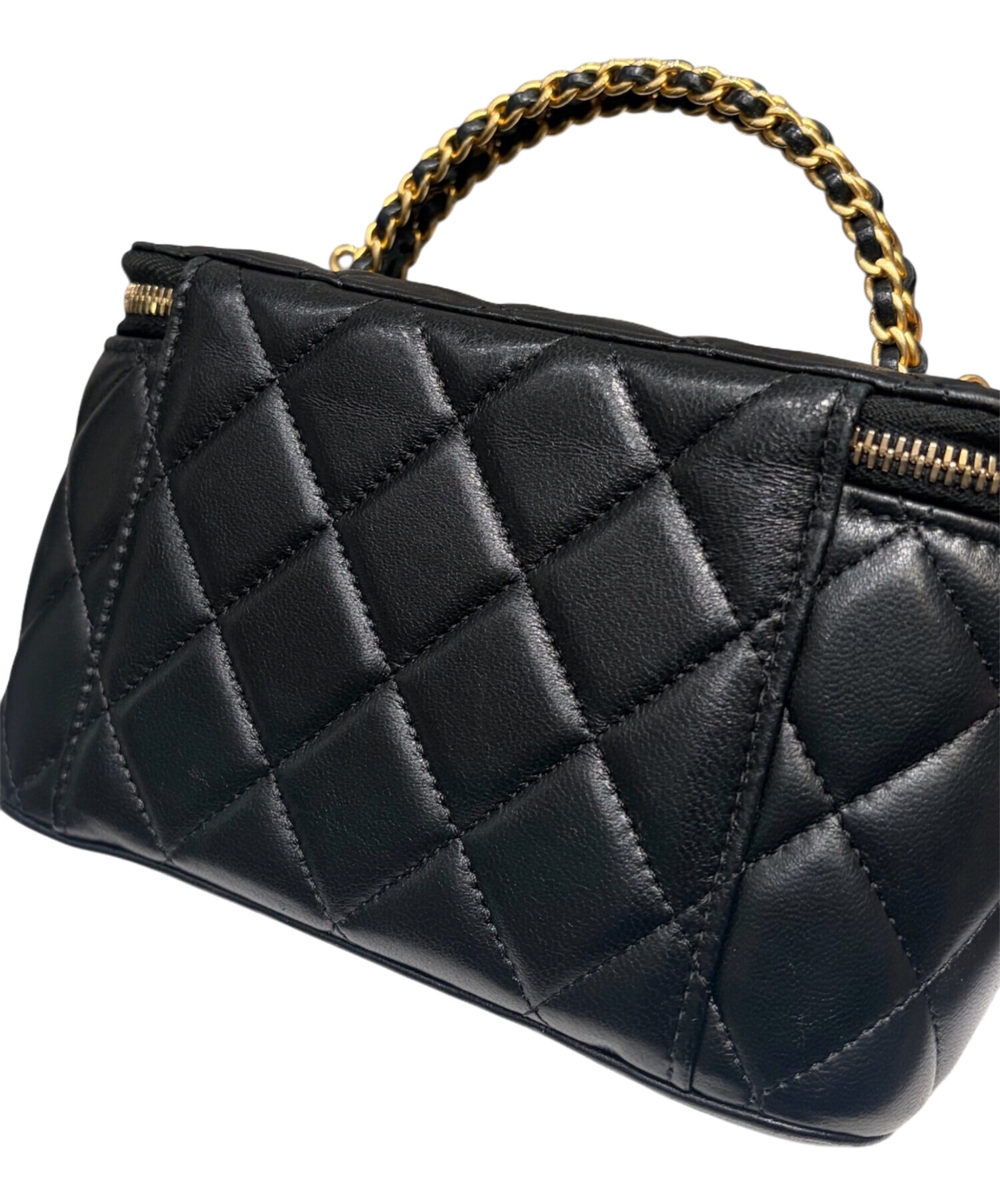 | スタッフコメント | CHANELのバニティバッグでございます。上質なラムスキンにブランドを象徴するマトラッセデザインを施した、エレガントな一品。チェーンショルダー付きの2WAY仕様で、ハンドバッグとしてもショルダーバッグとしてもお使いいただける実用性も魅力。コンパクトながら存在感があり、コーディネートを華やかに演出してくれるアイテムです。 |