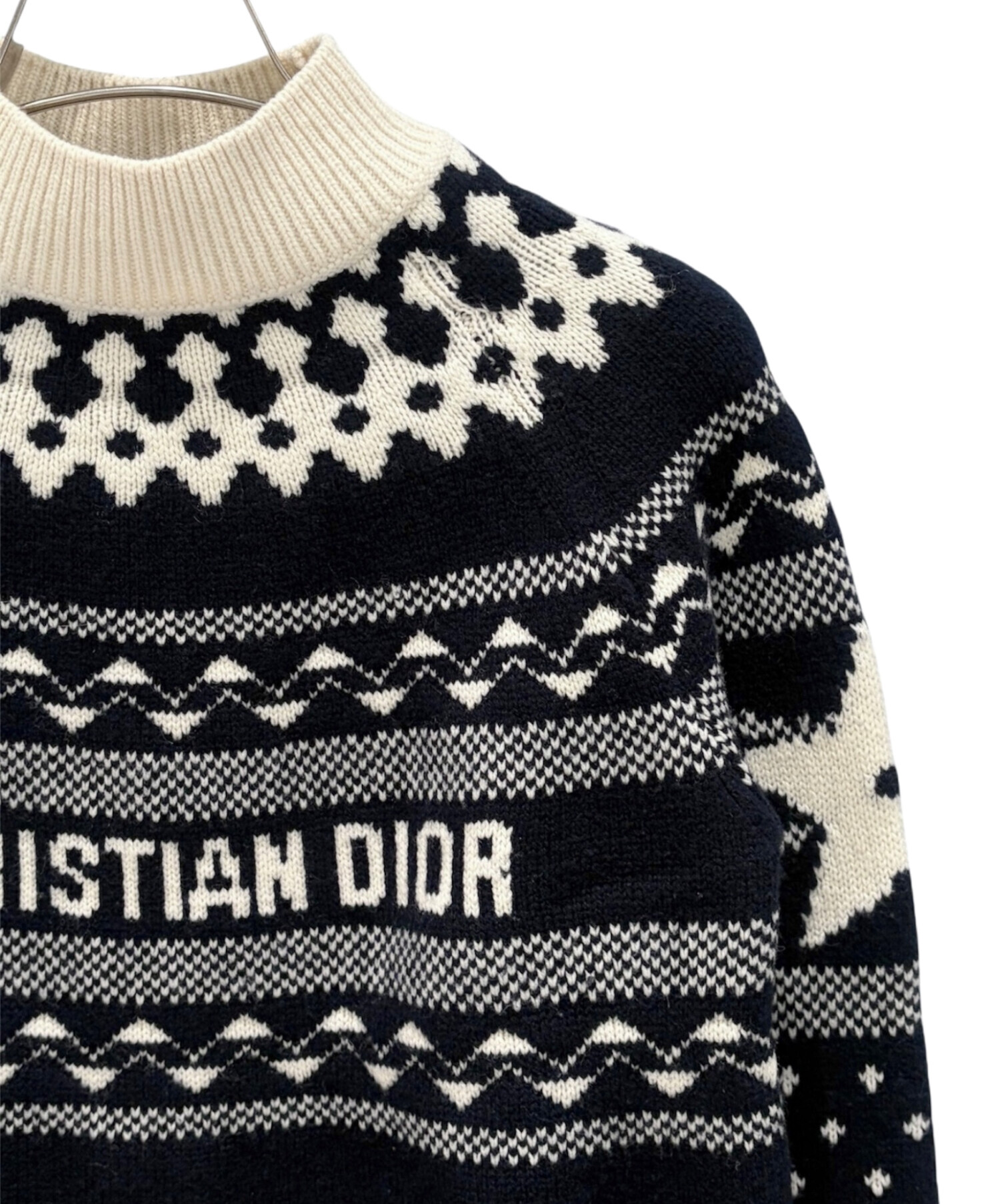 スタッフコメント Christian Diorのルディック柄ハイネックニットでございます。ブランドロゴとノルディック柄を組み合わせた印象的なデザインが魅力の一着。コントラストの効いた配色が存在感を放ち、コーディネートの主役として活躍します。温かみのあるニット素材とハイネック仕様で、コーディネートに上品なアクセントを添えてくれるアイテムです。