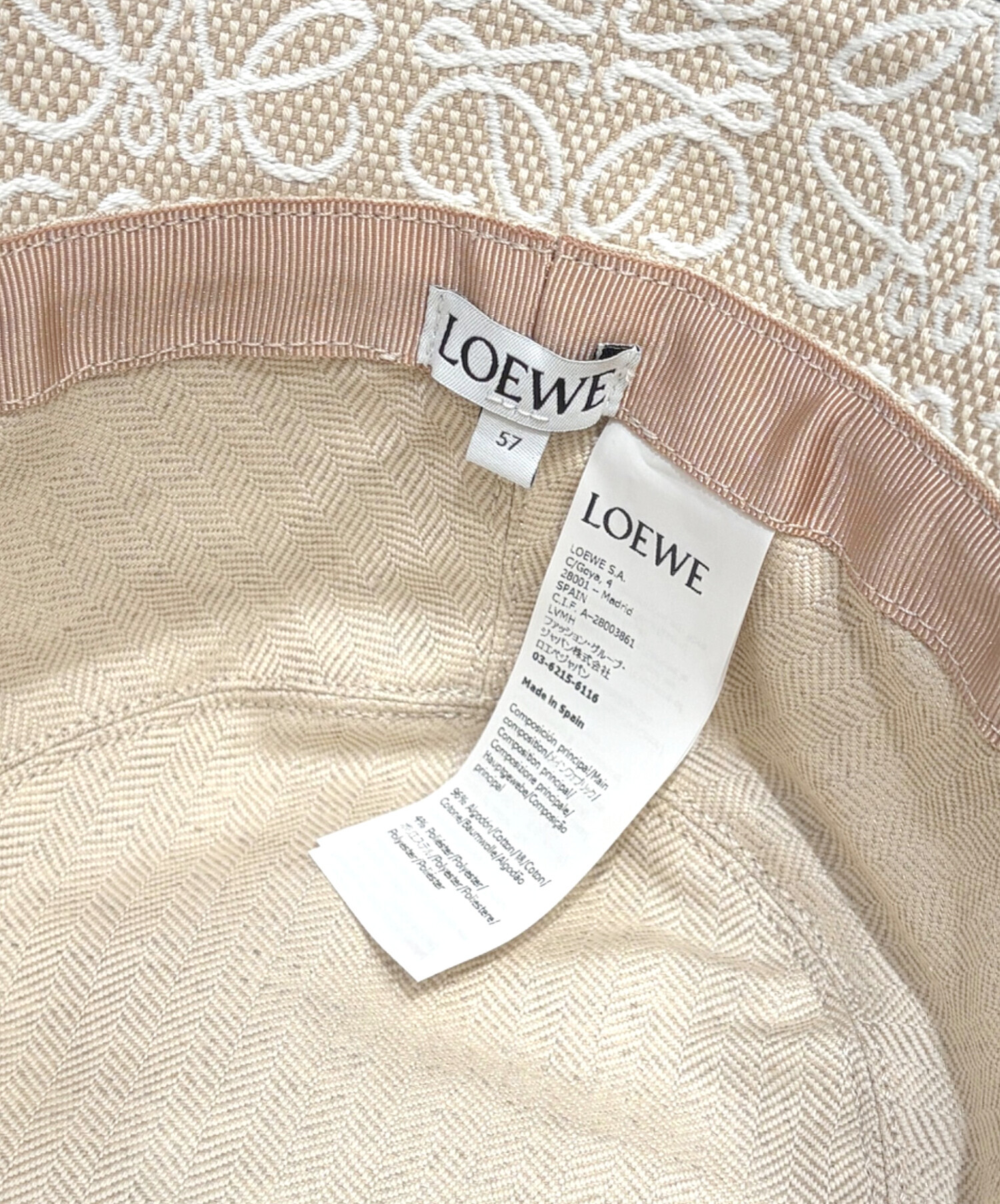 | スタッフコメント | LOEWEのアナグラムジャカードバケットハットでございます。ブランドを象徴するアナグラム柄をジャカード織で表現したデザインが魅力です。軽やかな素材感と程よいフィットで被りやすく、日差し対策はもちろんコーディネートのアクセントにも活躍するアイテムです。 |