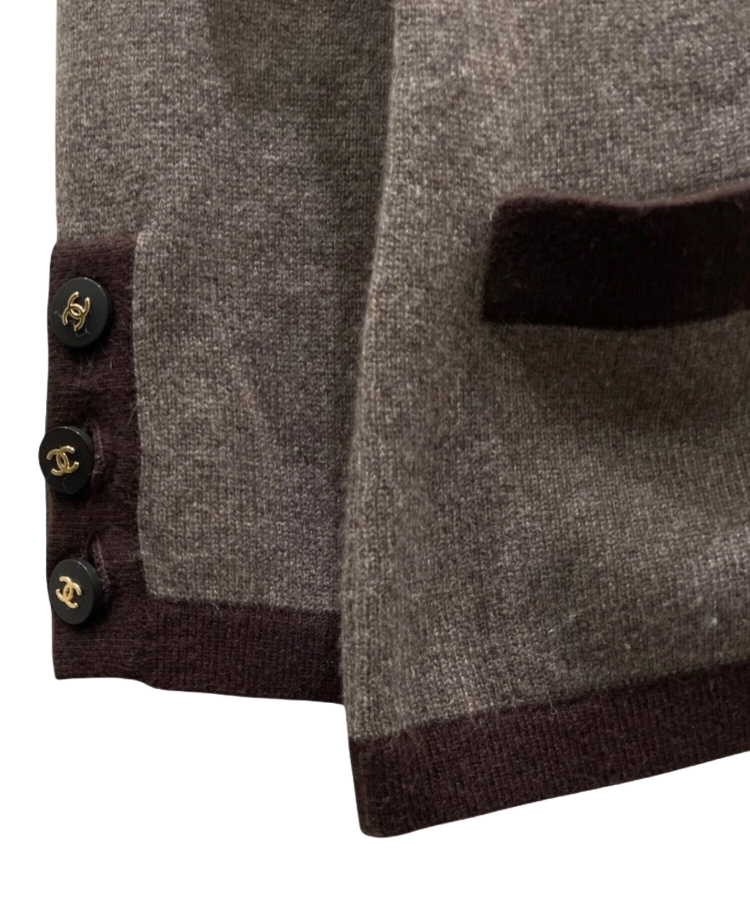• CHANEL(シャネル)CHANEL (シャネル) 96A ココマークボタン カシミヤアンサンブルカーディガン ブラウン サイズ:36の古着・服飾アイテム 印字薄れあり
