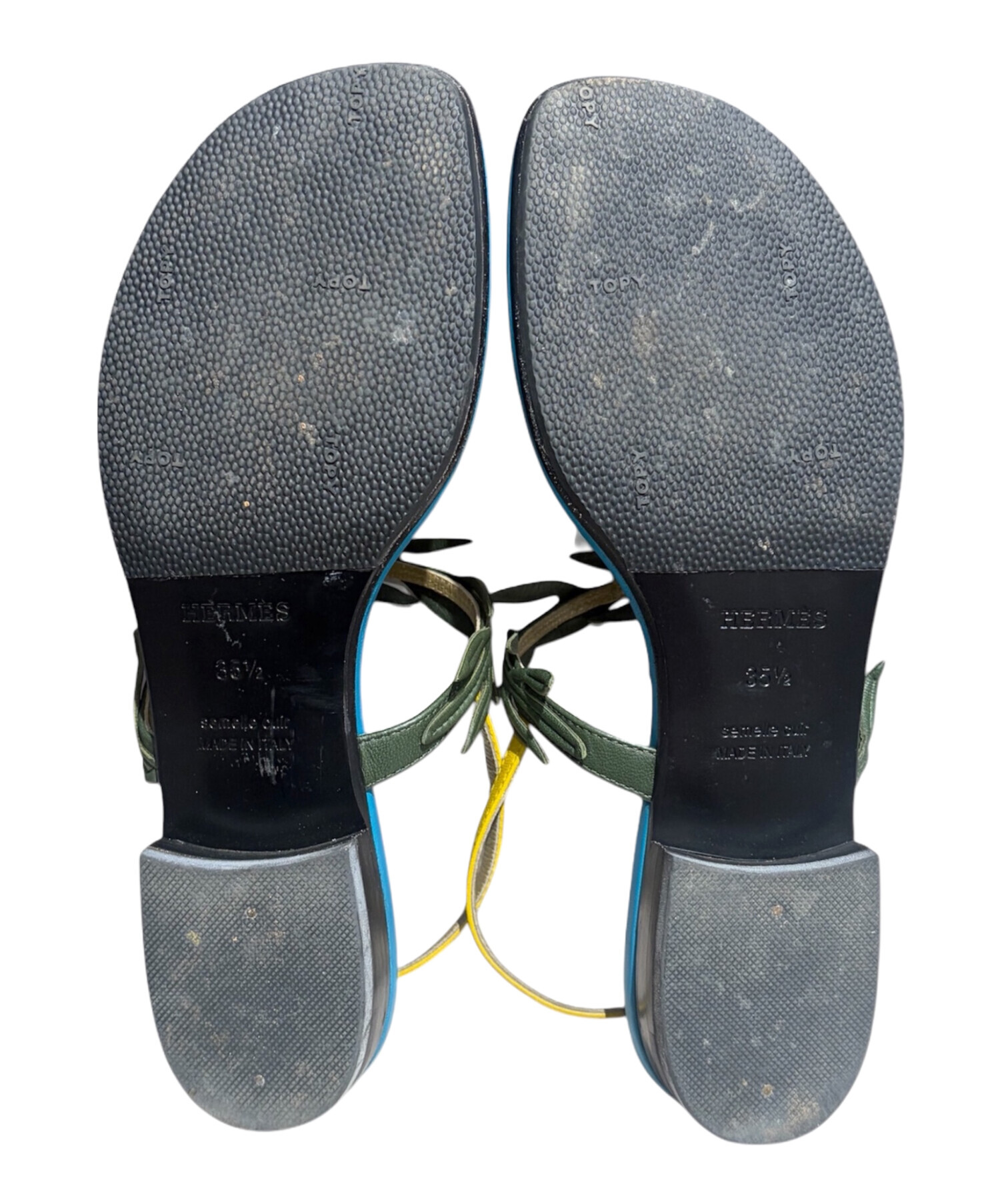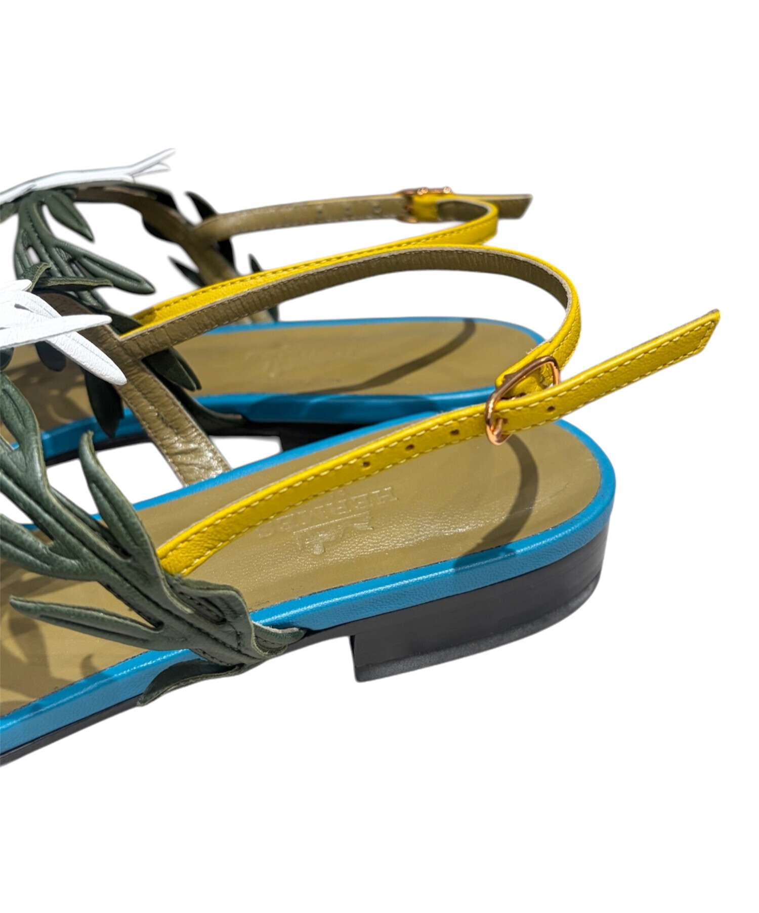 | スタッフコメント | 華やかなマルチカラーにリーフモチーフをあしらった、足元から季節感を演出してくれる一足です。エルメスらしい上質な素材使いと繊細なデザインが融合し、カジュアルながらもラグジュアリーな印象に。シンプルなコーディネートに取り入れるだけでアクセントとなり、夏のスタイリングを格上げしてくれる存在感のあるサンダルです。 |