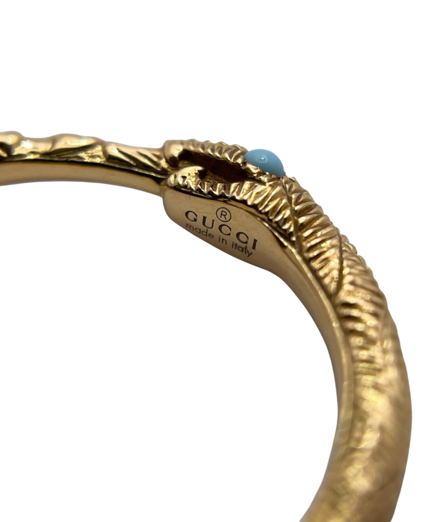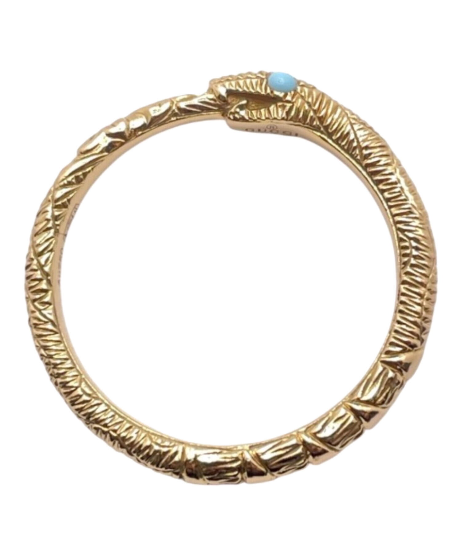 | スタッフコメント | GUCCI(グッチ)のウロボロス2Pターコイズリングは、蛇が円を描く象徴的デザインに2石のターコイズを配したK18YGジュエリー。イエローゴールドの上品な輝きと鮮やかなブルーが指元にアクセントを添えます。程よいボリュームと滑らかな着け心地で、日常使いから装いのポイントまで幅広く活躍するリングです。 |