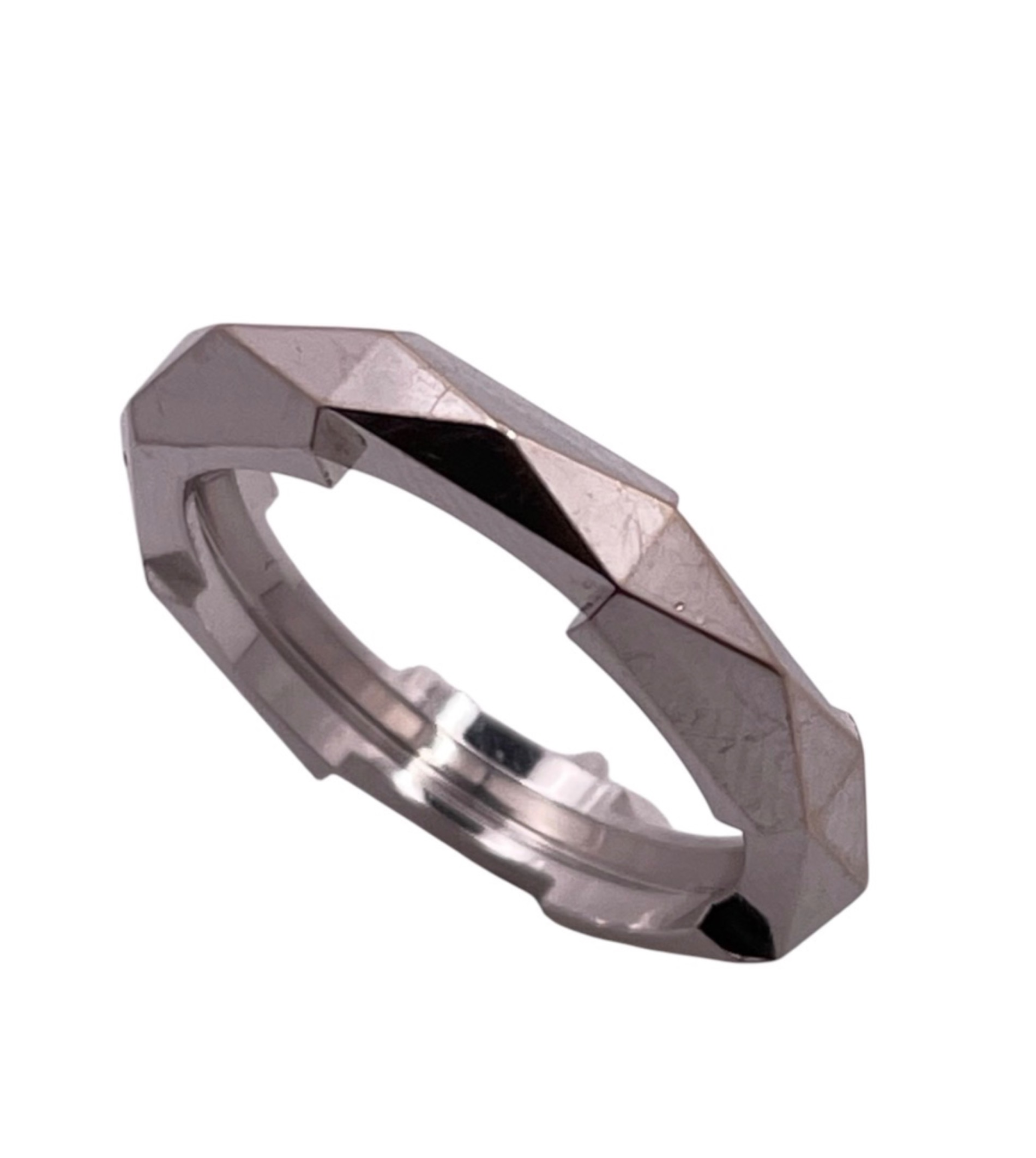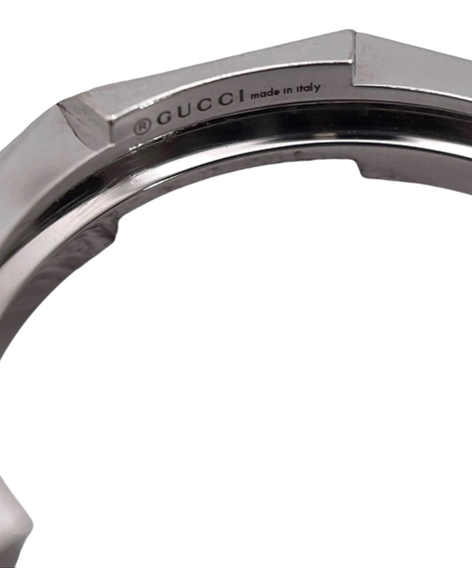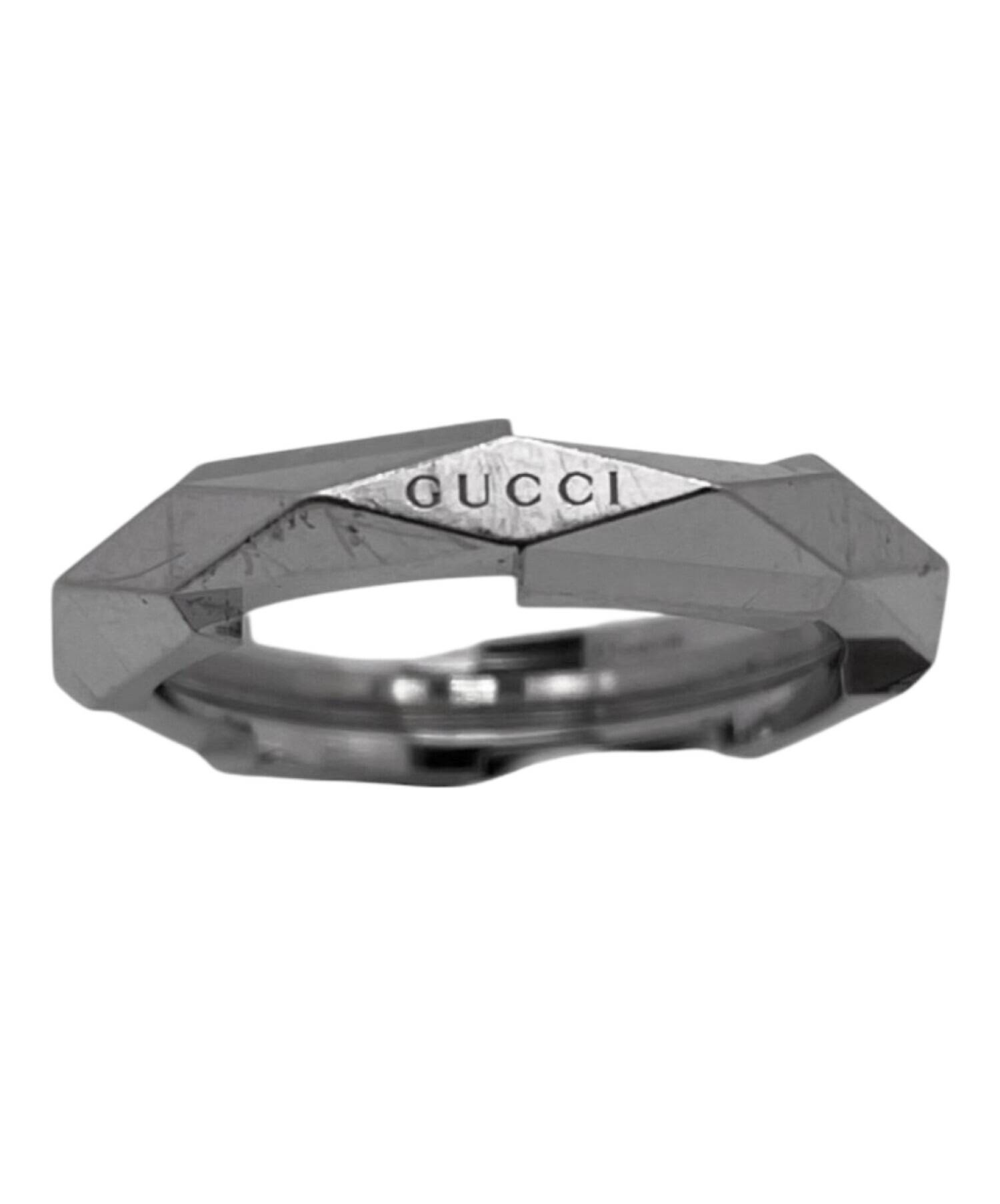 | スタッフコメント | GUCCI(グッチ)のリンクトゥラブ スタッズリングは、多面カットとスタッズ調デザインが印象的なリング。シルバーカラーのメタルがシャープな輝きを放ち、指元にモードなアクセントを添えます。程よいボリューム感と滑らかな内側仕上げで着け心地も良く、日常からスタイリングの主役まで幅広く活躍します。 |