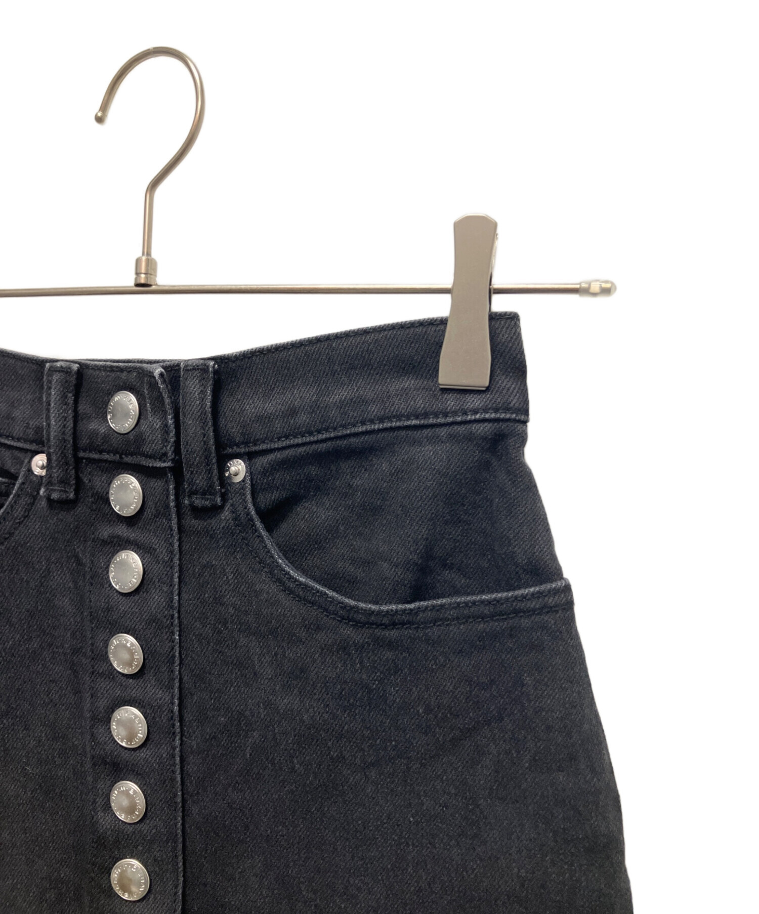 | スタッフコメント | ALEXANDER WANGから縦にボタンがいくつも施された魅力的な「ハイウエスト デニムスカート」になります。ブラックカラーでクールな印象を与えてくれます。ボタンを開けてズボンの上からレイヤーするなど、様々な着方ができる1着になります。 |
