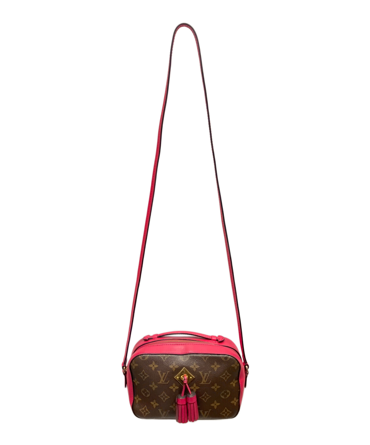 | スタッフコメント | 定番のモノグラムキャンバスに鮮やかなピンクカラーのカーフレザーを組み合ショルダーバッグでございます。Louis Vuittonシグネチャーが刻印されたメタルピースとレザータッセルがフェミニンな雰囲気を醸し出します。クロスボディスタイルにも対応可能なストラップとハンドルが付いて、持ち方のアレンジもお楽しみいただける一品です。 |