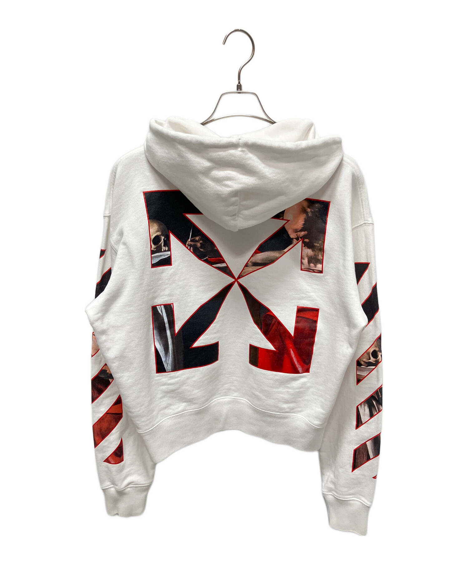 | スタッフコメント | フロントにカラヴァッジオの絵のプリントが施されたフーディになります。背面には、OFFWHITEの「ダブルアローロゴ」がデザインされており、両面でお楽しみいただけます。少しクロップド丈な為、ハイウエストのパンツと合わせるとスタイルアップが期待できます。 |