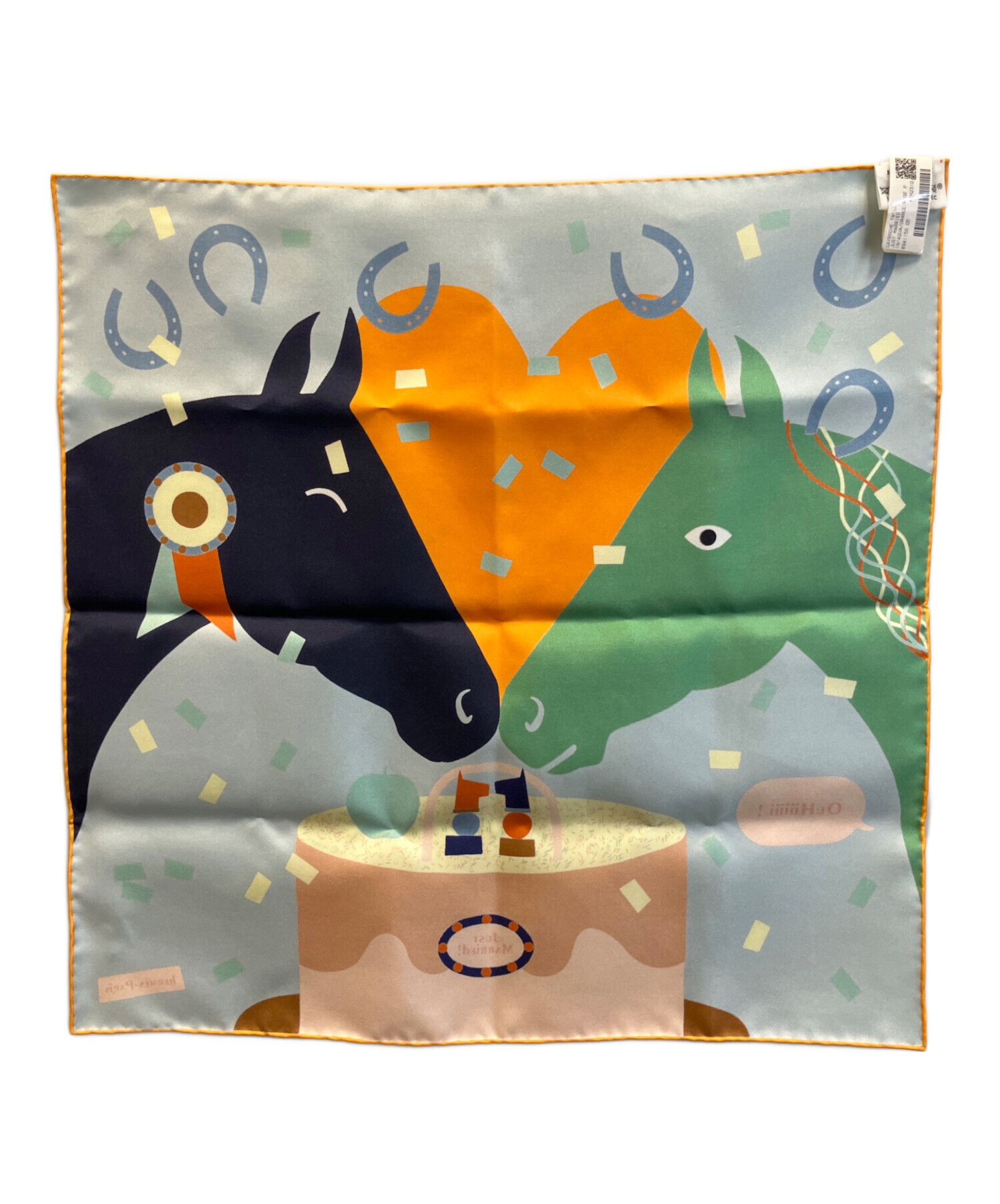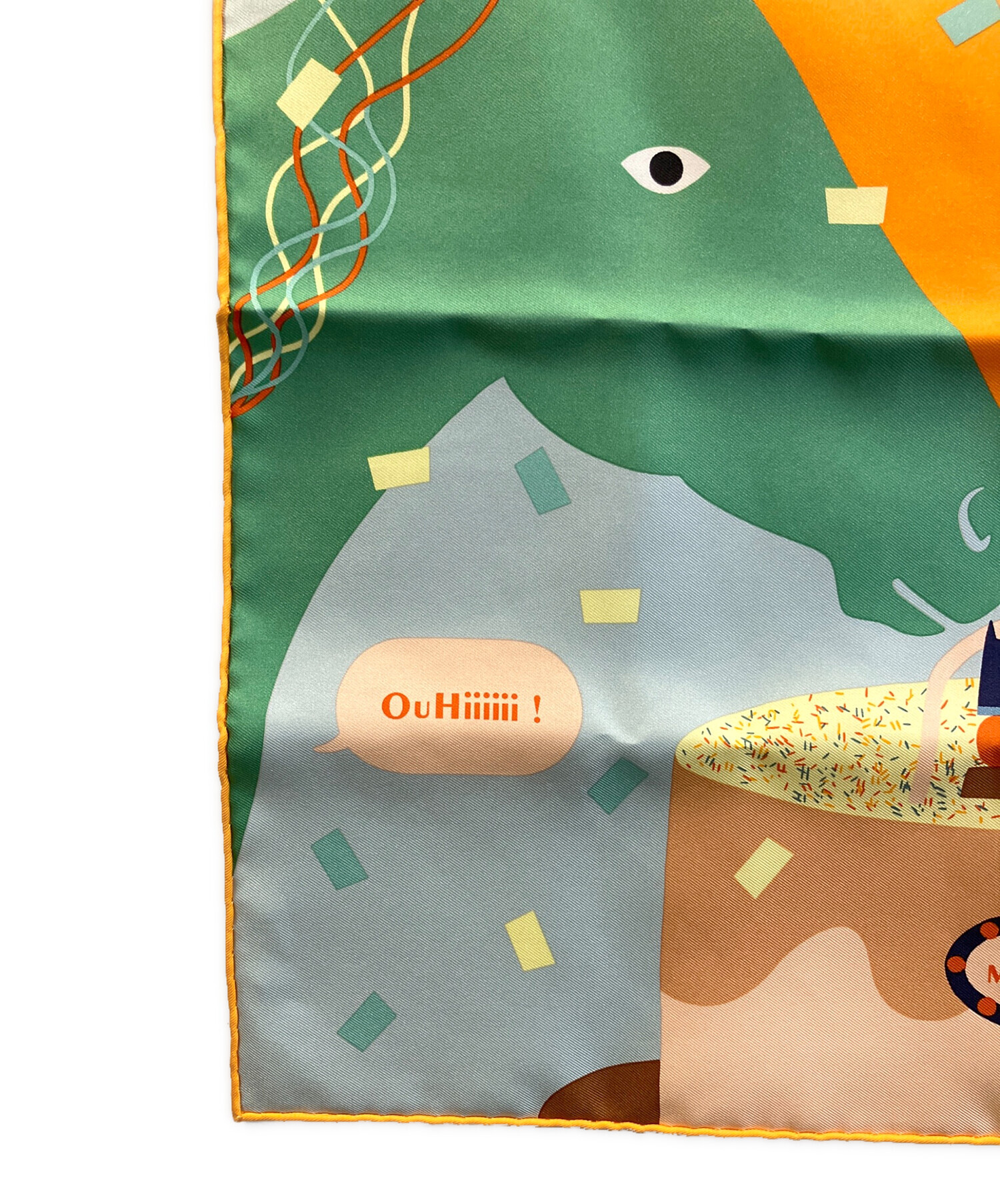 | スタッフコメント | ポップな色彩と遊び心あふれるデザインが印象的なHERMESのスカーフでございます。上質なシルク素材ならではの艶やかな光沢と滑らかな肌触りで、首元に巻くだけでなくバッグに結んだり、ヘアアクセサリーとしてもアレンジいただけるお品です。 |