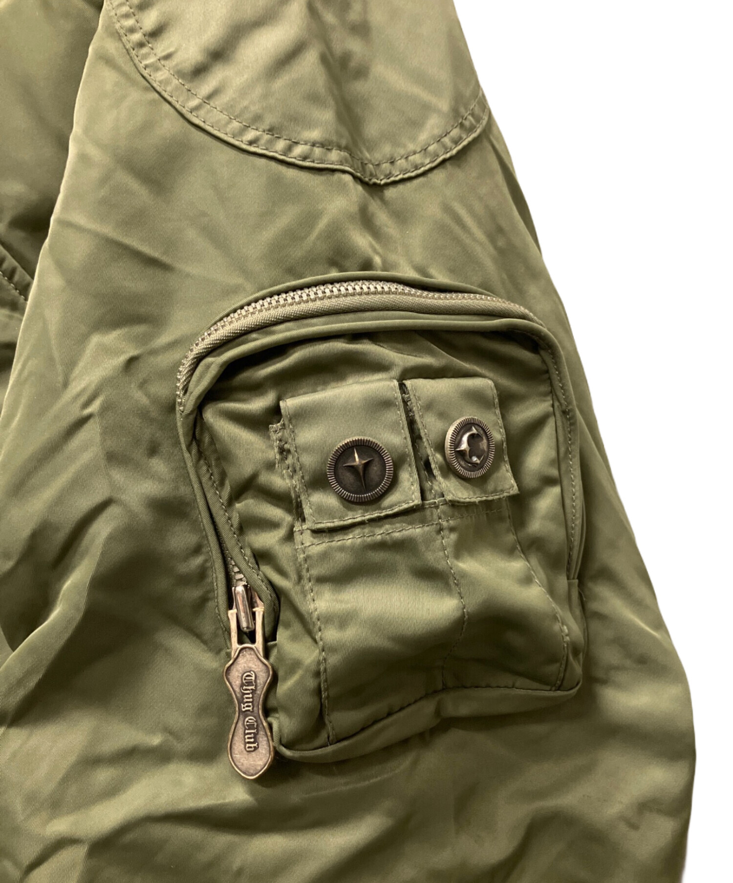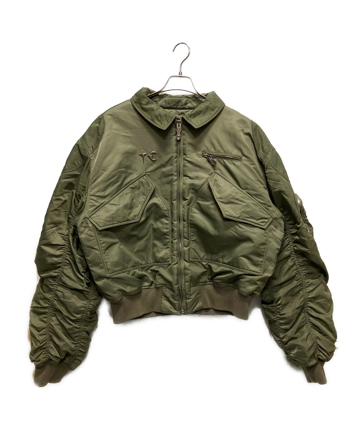 | スタッフコメント | アーム部分のギャザーディテールが強い存在感を放つTHUG CLUBのブルゾン。カーキの落ち着いた色味に独創的なデザインが映え、コーディネートの主役として活躍します。程よくゆとりのあるシルエットでレイヤードもしやすく、デニムやカーゴパンツと合わせて雰囲気のあるスタイルを演出できる一着です。 |