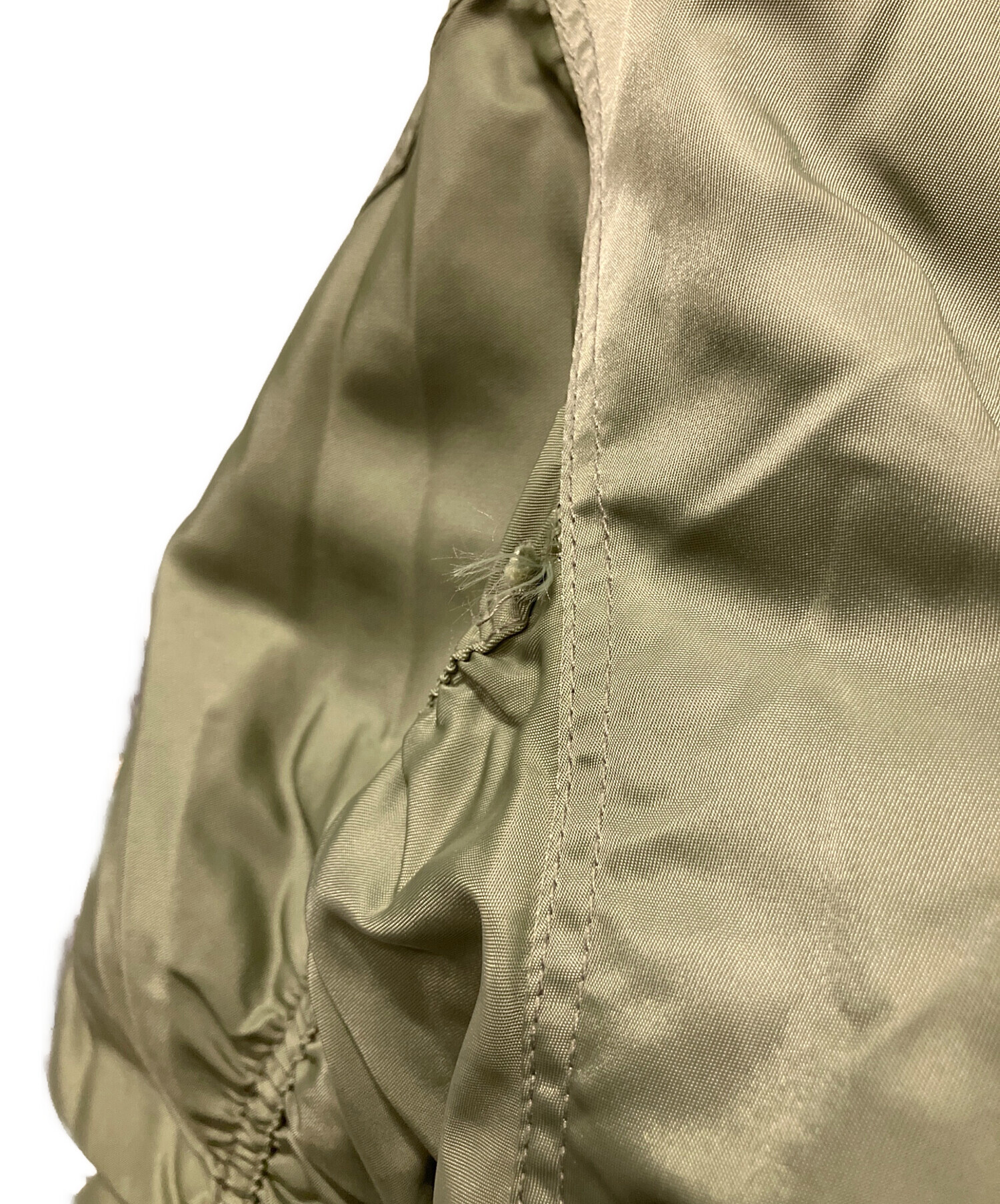 | 状態 | こちらの商品は中古品であり、左袖付け根部分若干のホツレ、ロゴ部分若干の穴がございます。また、使用に伴います細かなキズ、汚れがございます。店頭にて展示販売を行っている為、記載に無い細かなキズ、汚れが見受けられる場合がございます。 |
