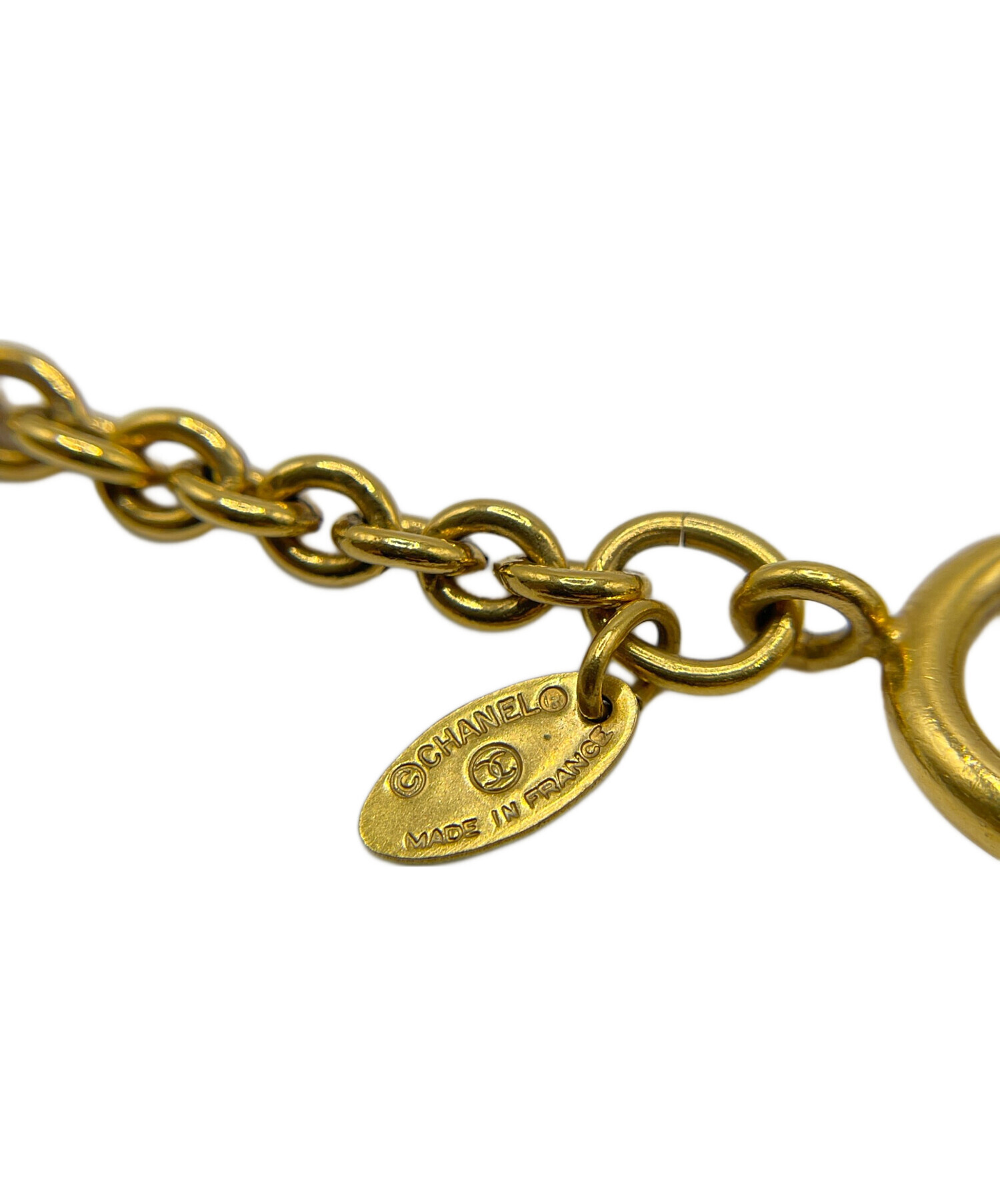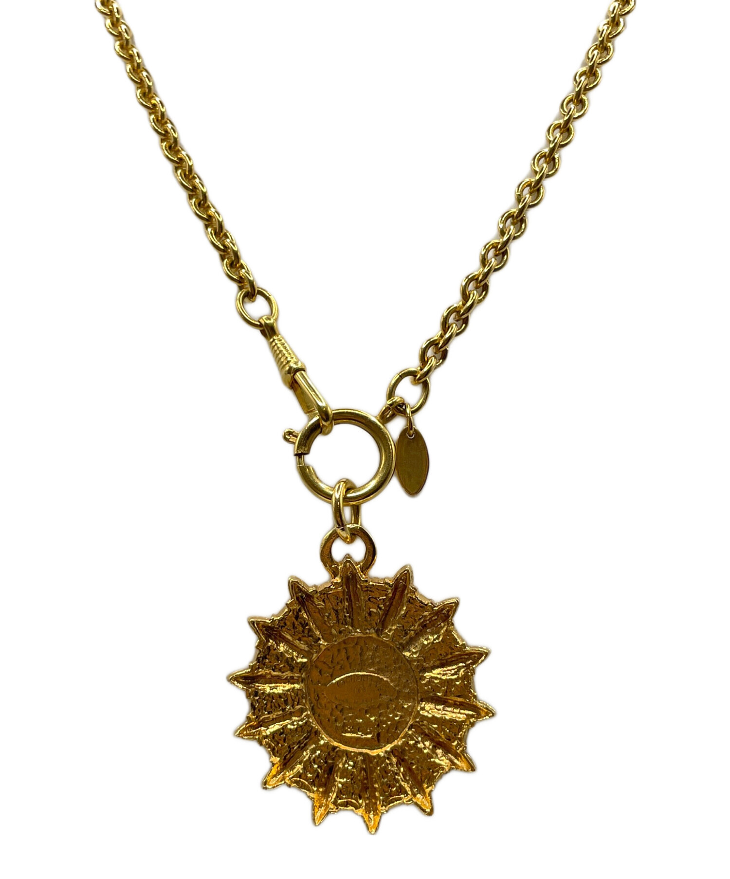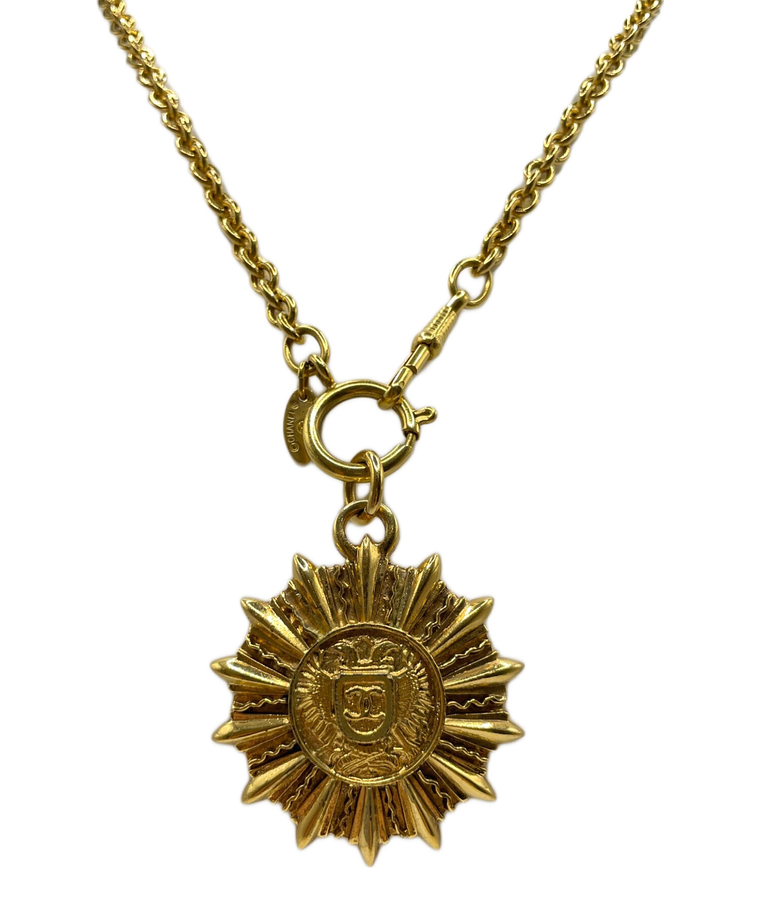 | スタッフコメント | フロント部分にココマークがデザインされたエンブレムペンダントになります。華やかな金色と太目のチェーンが相性良く魅力的です。CHANELの黒と金のイメージカラーを彷彿とさせ様々な着合わせが楽しめます。 |