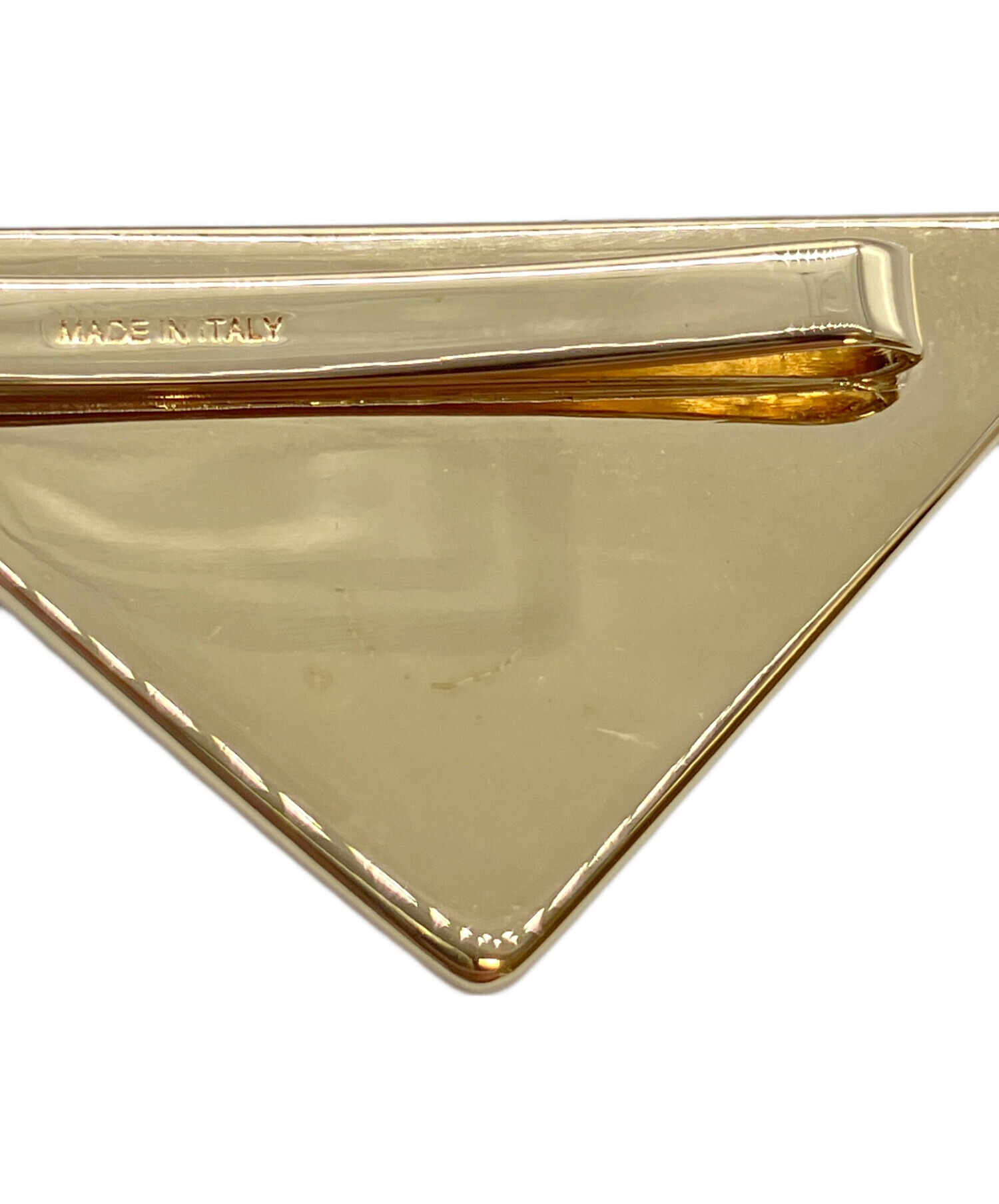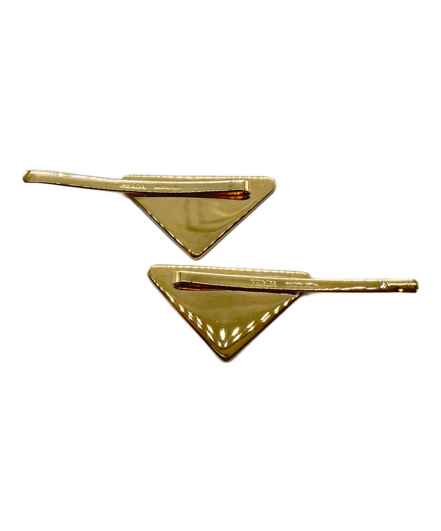 | スタッフコメント | PRADAを象徴するトライアングルロゴがあしらわれたヘアクリップでございます。ゴールドとブルーがかったホワイトのカラーリングが、上品な印象を与えます。 |