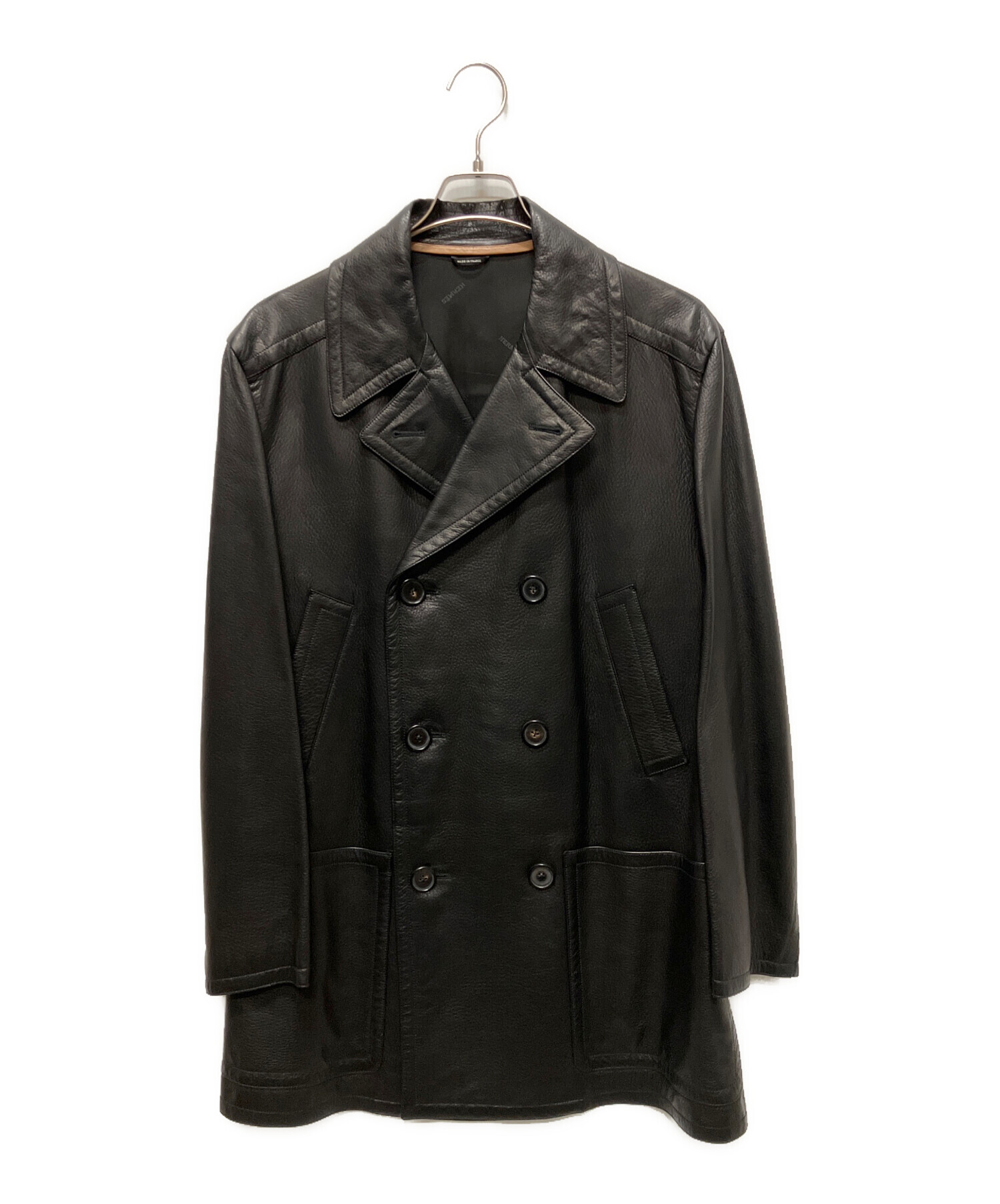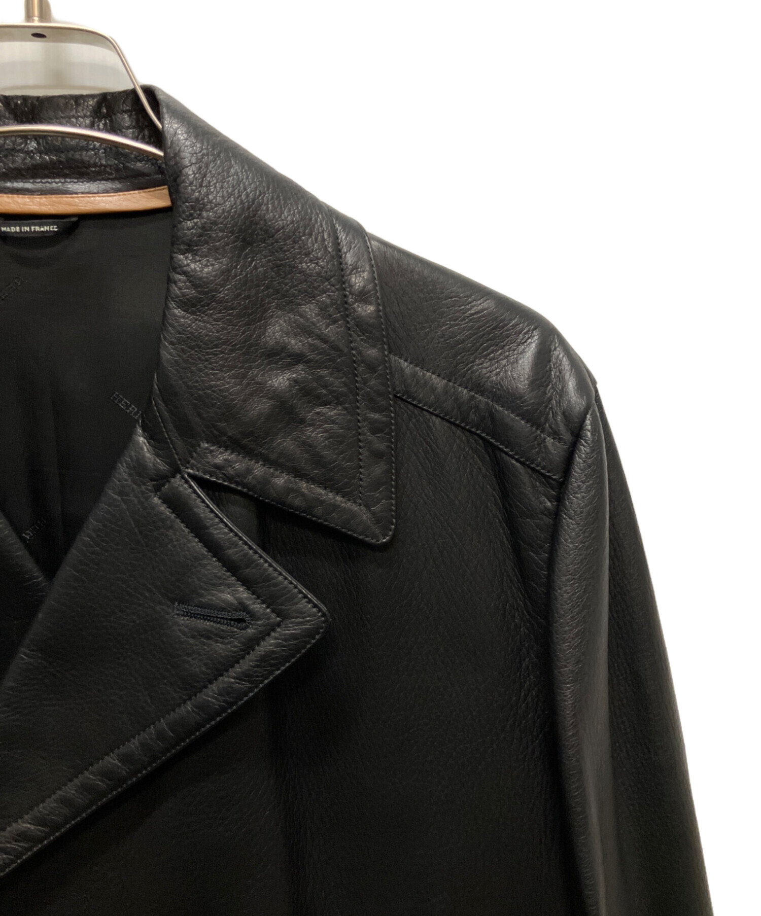 • HERMES(エルメス)HERMES (エルメス) ディアスキンンダブルコート ブラック サイズ:50の古着・服飾アイテム 右ヨーク部分擦れ有