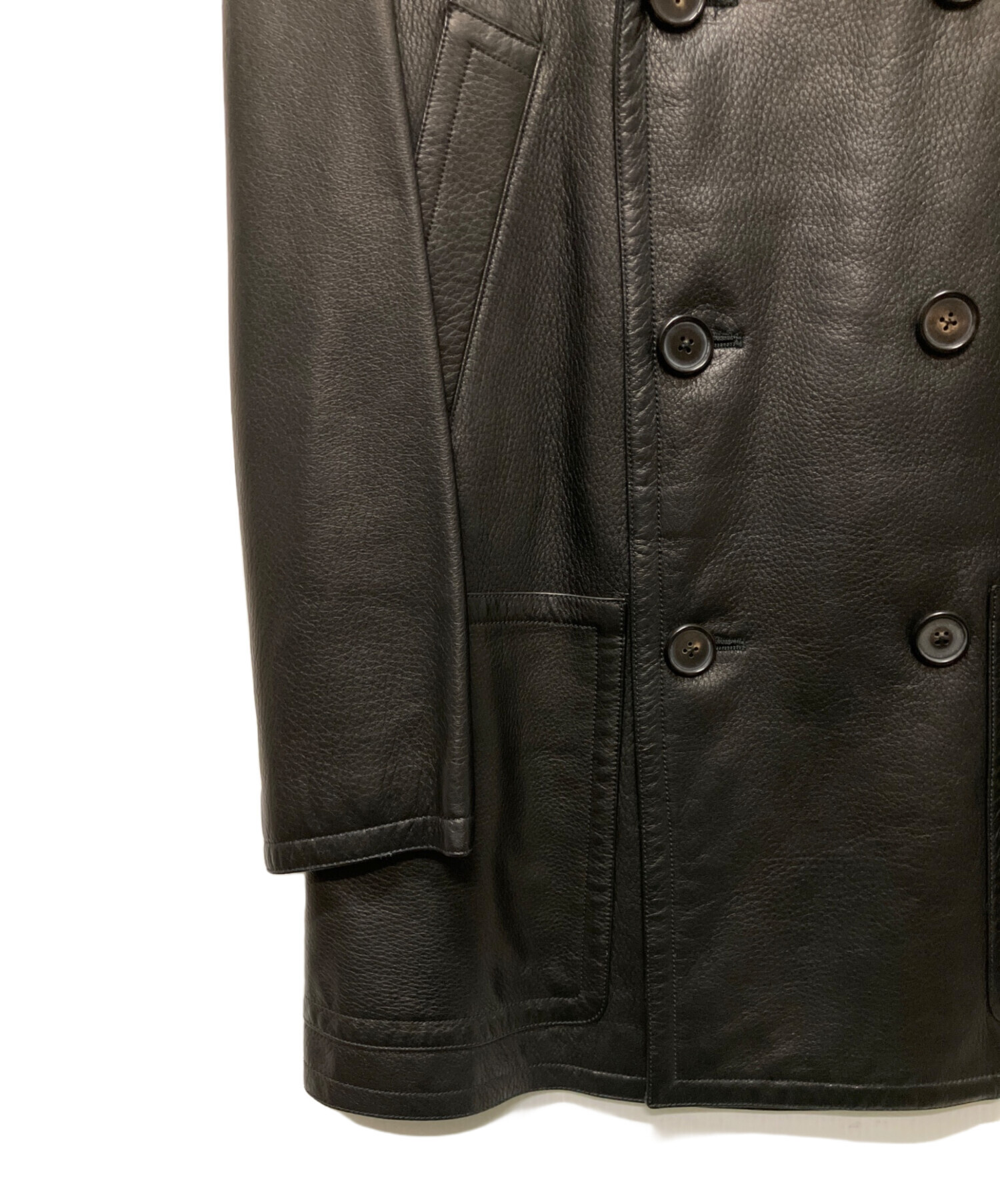 • HERMES(エルメス)HERMES (エルメス) ディアスキンンダブルコート ブラック サイズ:50の古着・服飾アイテム 右フラップ付近 小汚れ有