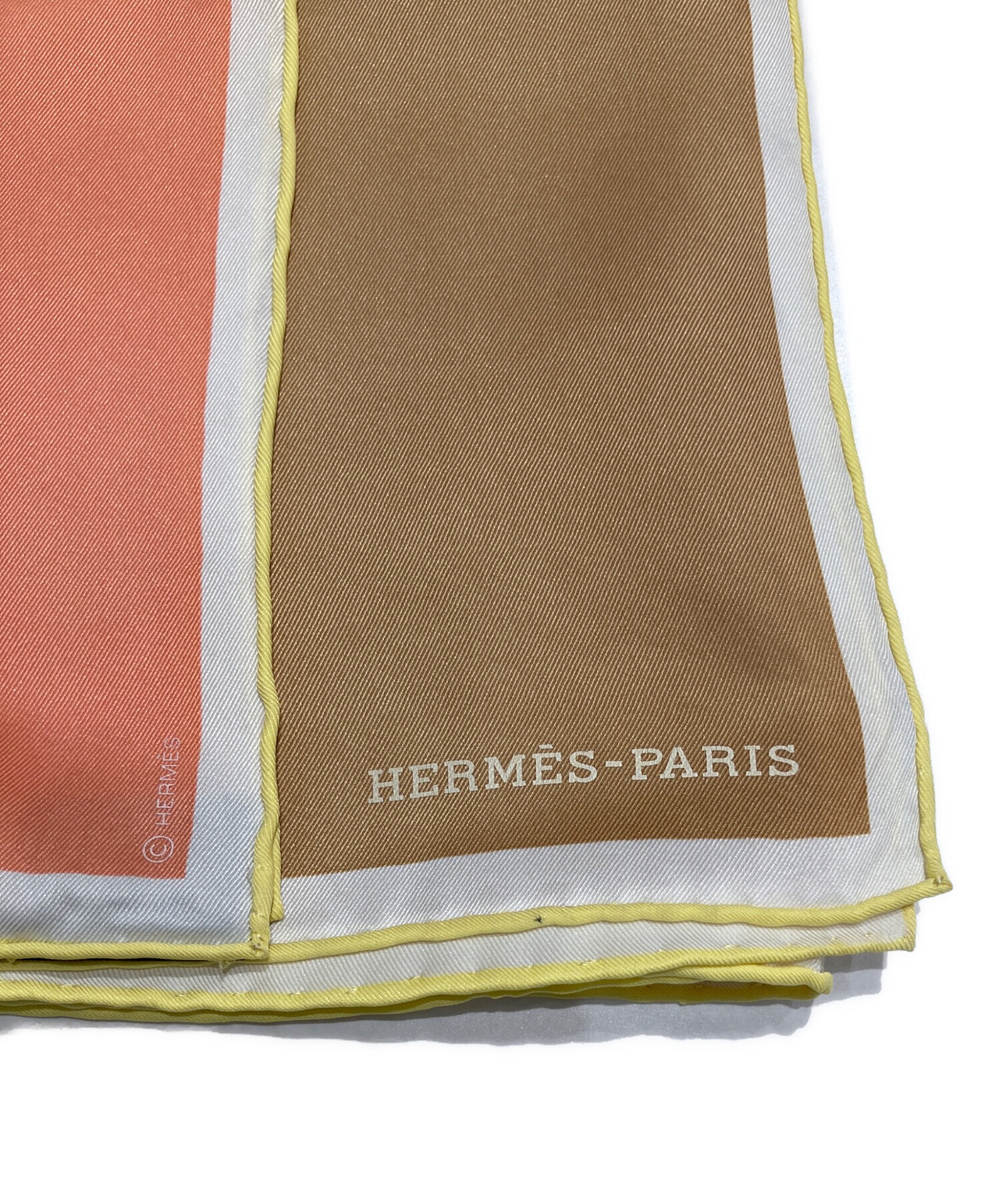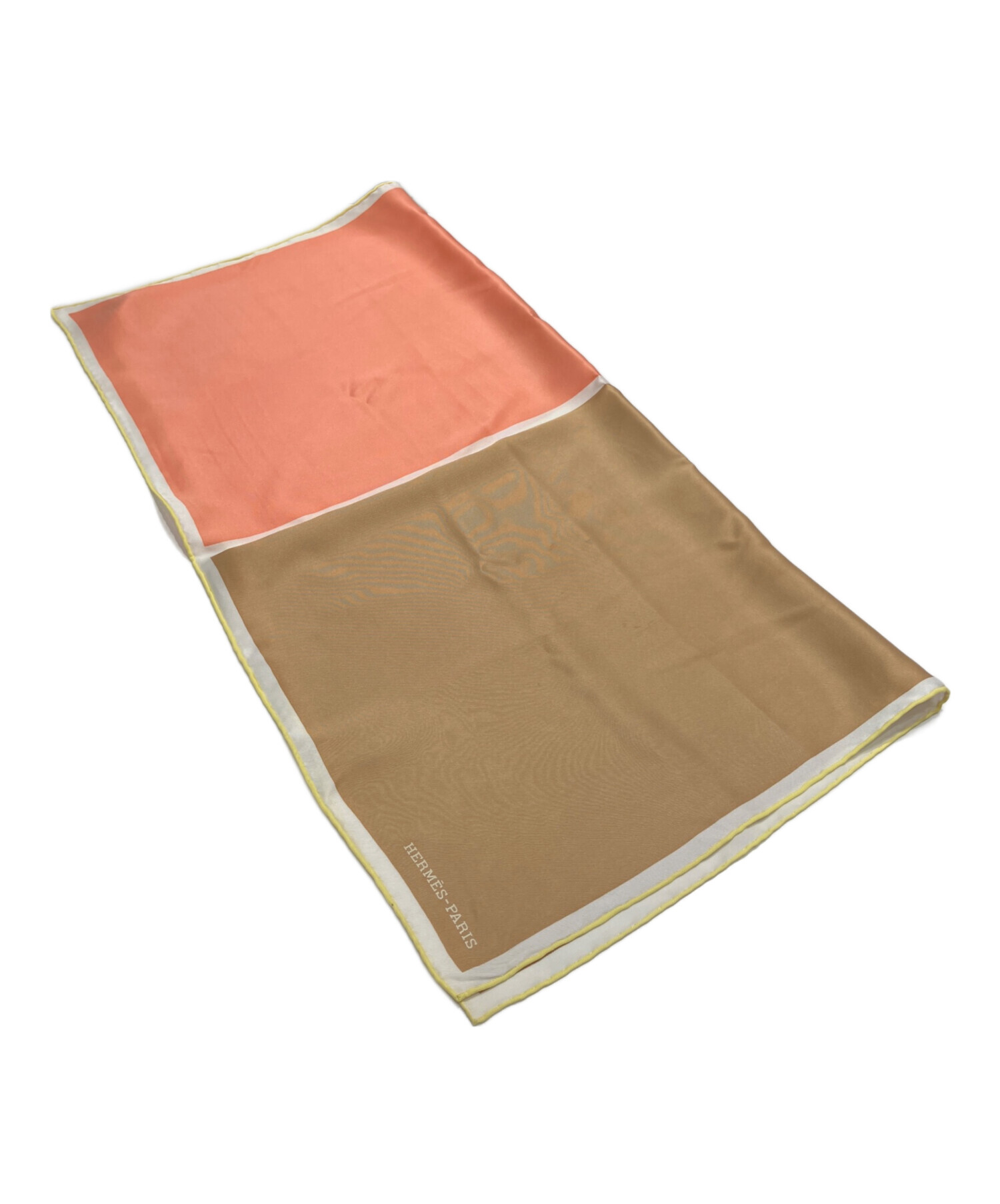 | スタッフコメント | サーモンピンクとブラウンの柔らかい印象のバイカラーが特徴的なHERMESのスカーフでございます。素材には上質なシルクツイルを使用し、エルメスならではの艶やかな光沢と肌触りをお楽しみいただけます。 |