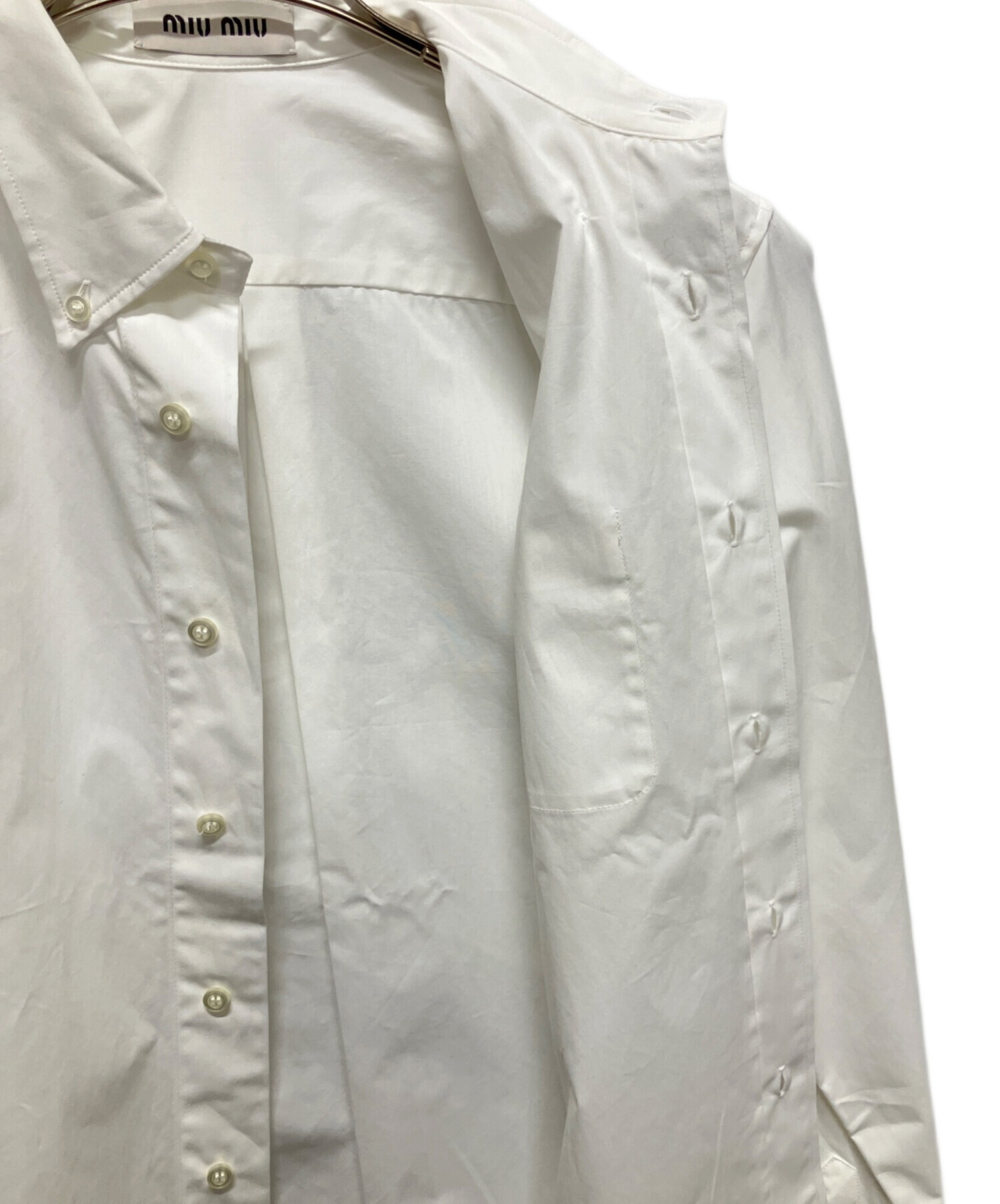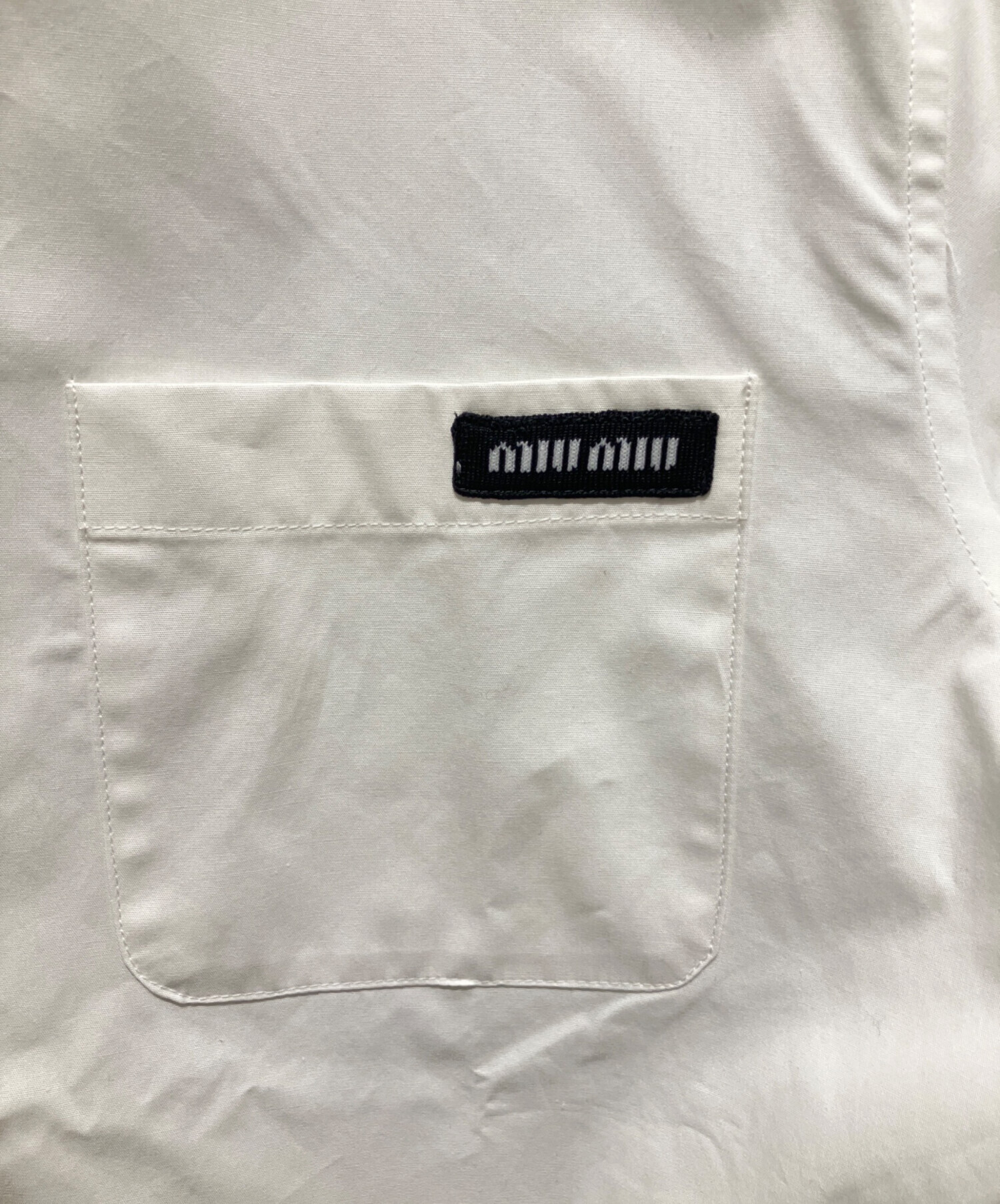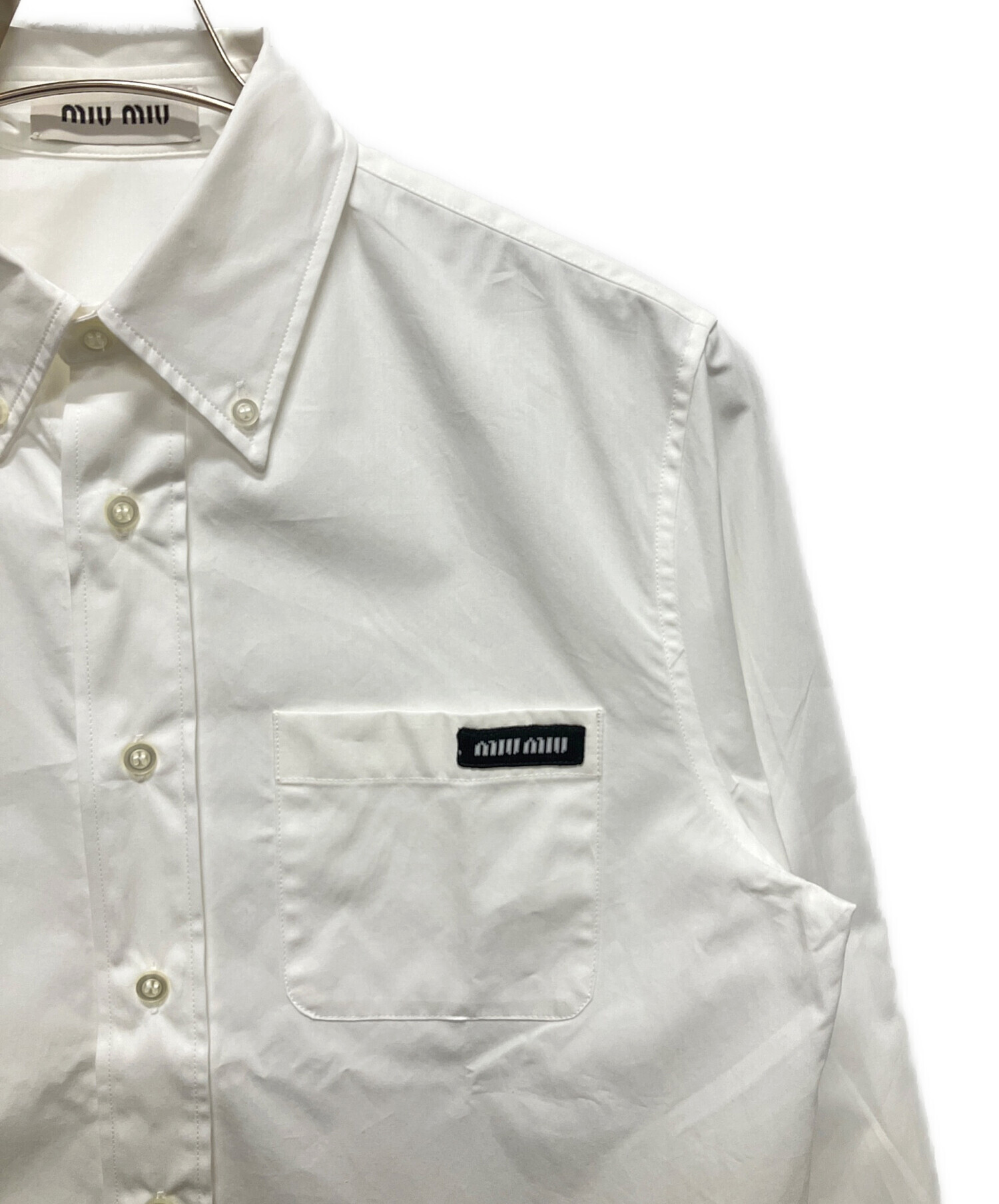 | スタッフコメント | シンプルな白のシャツにワンポイントでMIUMIUのロゴがあり、シンプルでありながらも高級感のあるMIUMIUらしいデザインのアイテムです。コットン素材を100%使用しており、快適に過ごすことができます。フォーマルな場合とカジュアルな場合の両方で使用することが可能です。 |