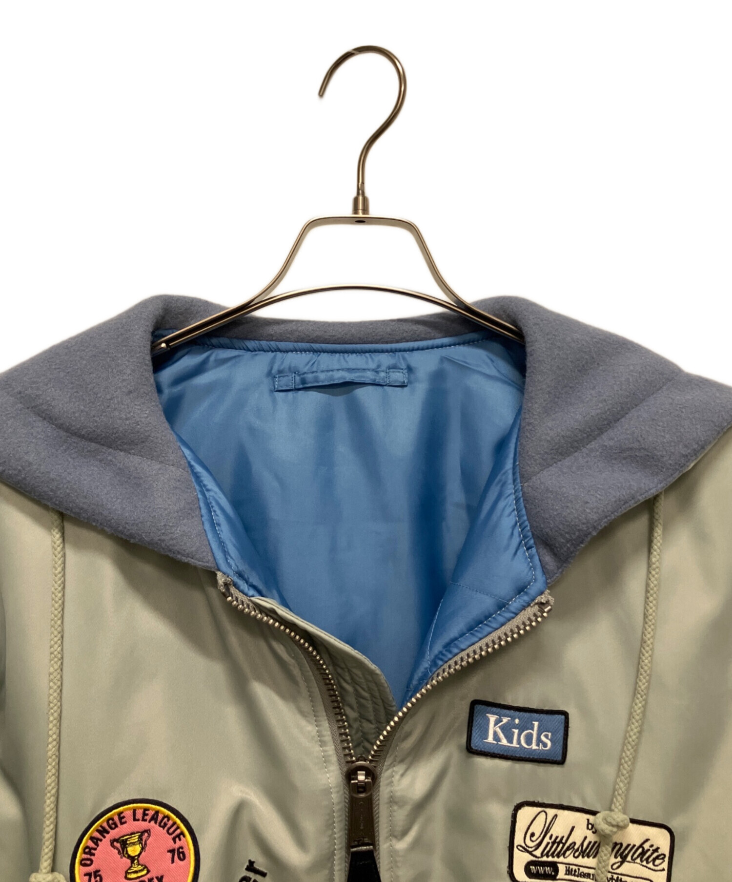 | スタッフコメント | ミリタリーライクなグリーンカラーがスタイリングに程よいアクセントを加えてくれるLittle sunny biteのMA-1でございます。ゆったりとしたシルエットでトレンド感があり、フェミニンなアイテムとのミックススタイルもお楽しみいただけます。軽やかな着心地でロングシーズン活躍する、デイリーに取り入れやすいお品です。 |