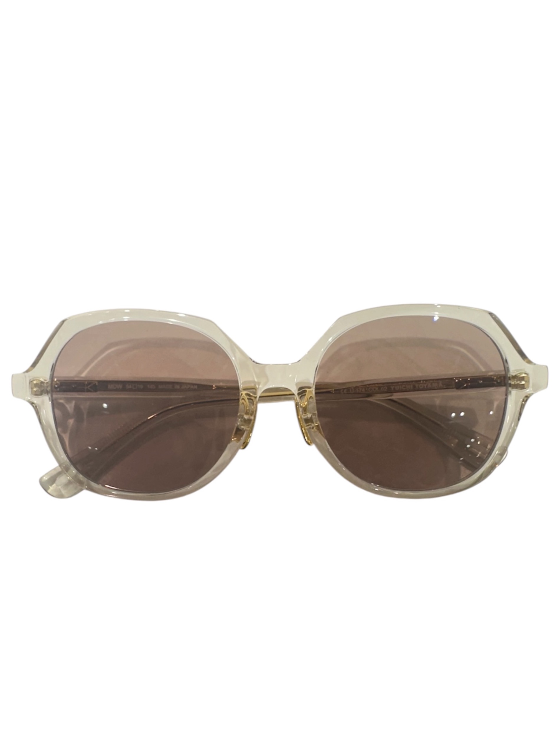 | スタッフコメント | 日本発のアイウェアブランドYUICHI TOYAMAのクリアフレームサングラス。伝統技術と革新的デザインの融合を掲げるブランドらしく、アセテート素材の透明感あるフレームに繊細なメタルパーツを組み合わせた構造が特徴です。軽やかな印象で顔なじみが良く、スタイリングに抜け感をプラス。デイリーからモードまで幅広いシーンで活躍する一本です。 |