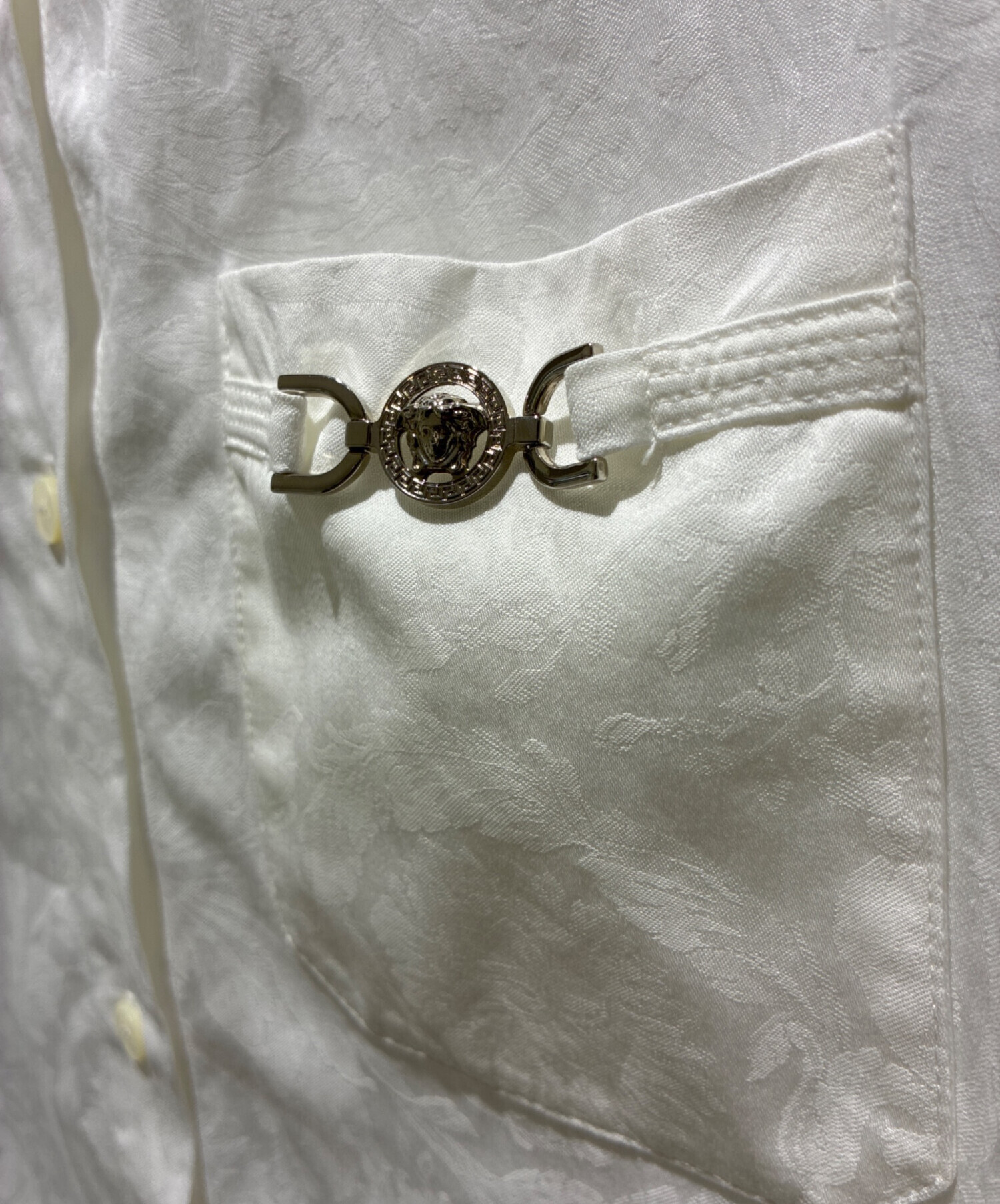 | スタッフコメント | VERSACEのシャツでございます。ホワイトのカラーリングが清潔感を際立たせ、スタイリングに洗練された印象を与えてくれます。シンプルな中にもブランドらしいエレガンスと存在感が感じられるデザインで、さりげないディテールが全体の印象を引き締めてくれます。フォーマルからカジュアルまで幅広いシーンでご着用いただける、汎用性の高い一枚でございます。 |