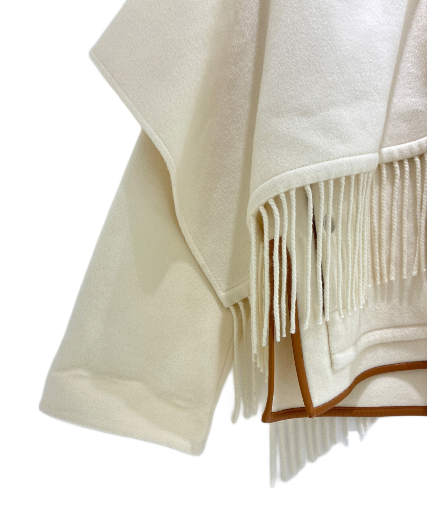 | スタッフコメント | 柔らかなウール素材を使用し、軽やかな着心地と高い保温性を兼ね備えながら、上質なレザートリムがエレガントなアクセントとなっております。ゆったりとしたフォルムが体型を問わず美しくまとまり、デイリーからお出かけシーンまで幅広く活躍する、品格あるおすすめのポンチョでございます。 |