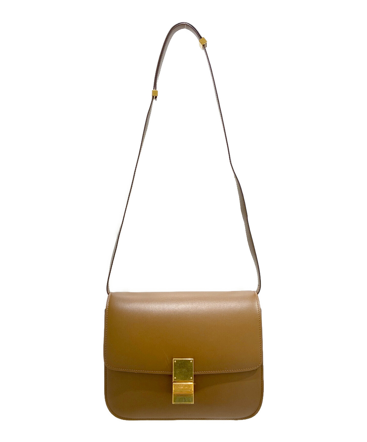 | スタッフコメント | 洗練されたスクエアフォルムであるCELINEのクラシックボックスでございます。フォーマルやカジュアルまで幅広く活躍いたします。上質なレザーの質感が装いに気品を添え、フロントのゴールド金具がさりげないアクセントになる一品でございます。適度な収納力を備え、長財布やスマートフォンなど必需品をすっきり収められる実用性も魅力でございます。 |