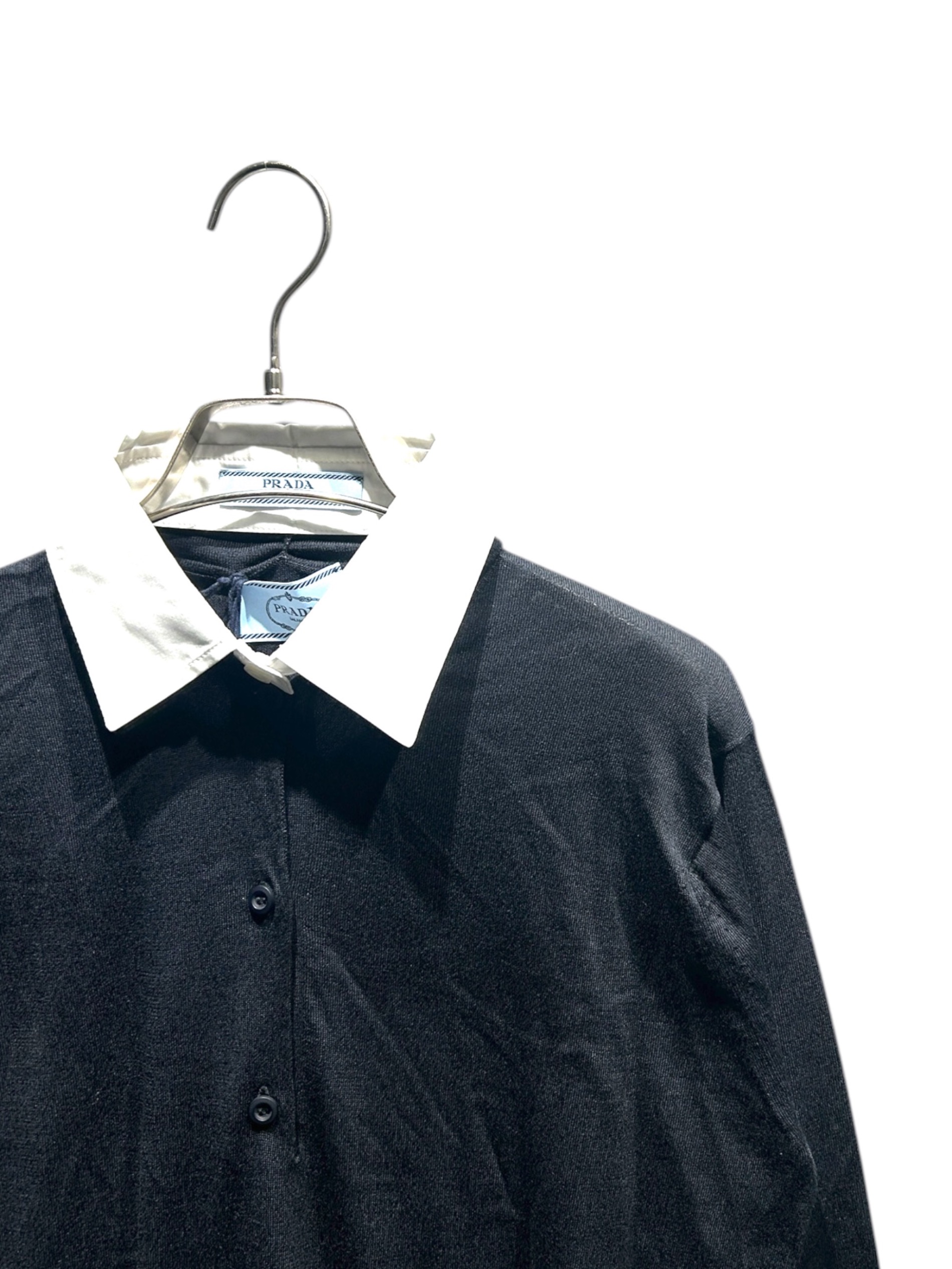 | スタッフコメント | PRADA(プラダ)のウールニットは、上質なウール素材を使用したやわらかな着心地に加え、襟付きデザインが特徴のニットトップスです。程よくきちんと感のある印象で、すっきりとしたシルエットに仕上がり、一枚でもインナーでも着用可能になっております。通勤や日常使いまで幅広いシーンに対応します。 |